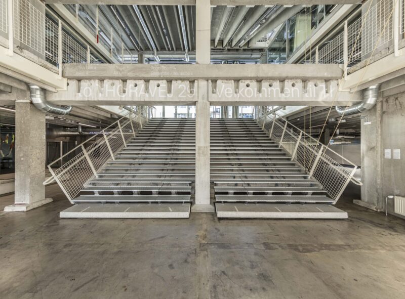 De adskilte etageplan med dybe forløb inddelt i små kontorlokaler er nu diametralt forandrede ved en transformation af bygningens geometri. Ved at anvende de eksisterende betondæk på en ny måde, er der skabt en stribe nye adgangsveje. Det er gjort ved at skære udsnit af betondækkene ud, og placere dem som trappeløb. Resultatet er en mere åben og transparent bygning, der inviterer til fællesskab og tværfagligt samarbejde.