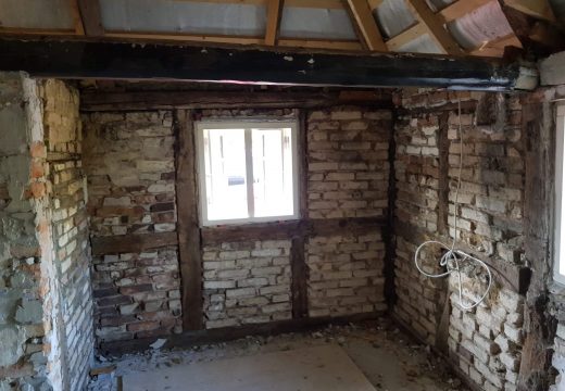 Gammelt bondehus fra 1657. Tidligere brugt som fattighus. Huset var i meget dårlig stand indvendig. Huset blev ryddet totalt. Udgravet 40 cm ned. Nye bjælker og hanebånd indsat. Alt el …