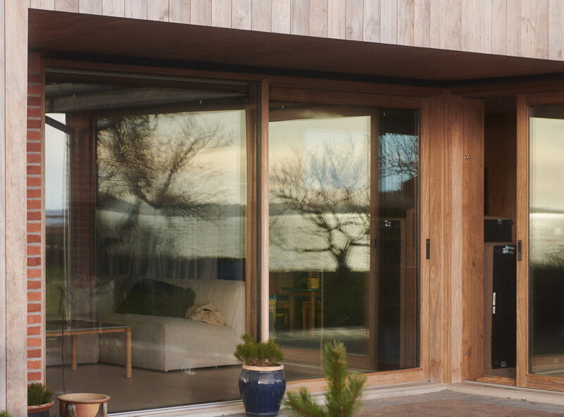 De nye materialer, som huset fik tilført, skulle være ærlige. Massive trævinduer, massiv træbeklædning, klinktræ på gavl som original, eternitplader som det originale gamle tag, og ikke mindst nye gulvklinker samt terassefliser i samme format, som de originale fliser i entreen.