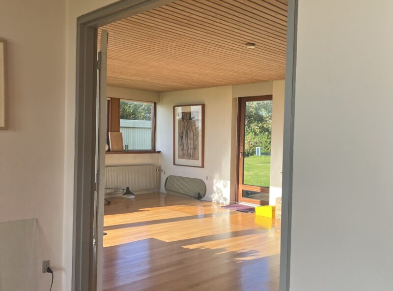 Ønsket fra start har været at beholde sjælen sammen med renoveringen – men hvordan gør man det, når ønsket om modernitet også er der? Hvilke valg er truffet i huset, vinduesformater, materialevalg, tanker bag? Vi kiggede ind i materialer – hvilke materialer kan vi beholde, genbruge, renovere?