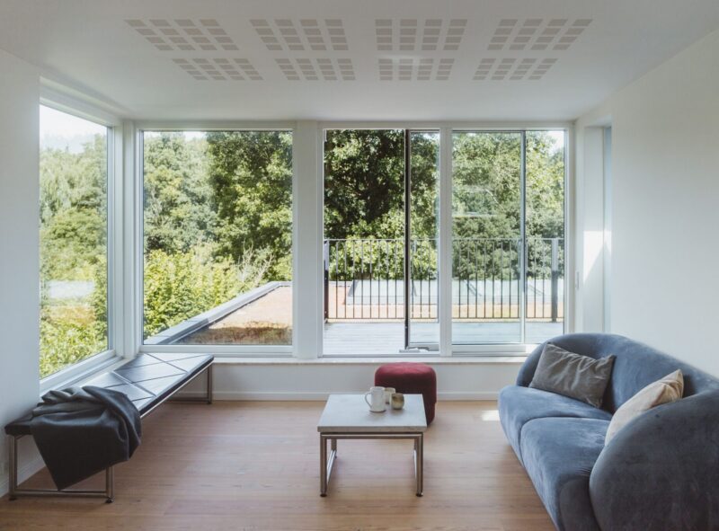 Både tag og facader er efterisoleret, og der er monteret nye 3 lags lavenergivinduer i hele huset for at nedbringe energiforbruget i boligen. De større vinduesarealer i stueetagen har tilført mere dagslys og udsyn til den ellers lidt mørke, nordvendte stue, hvilket har forbedret indeklimaet væsentligt.
