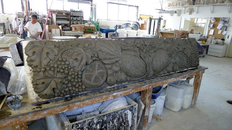Rubin Stuk & Søn påtog sig opgaven. Vi var ikke længere kun i gang med en renovering, men en genskabelse af ejendommen, som den fremstod efter opførelsen for over 100 år siden. Mange af stukarbejderne blev skabt på ny efter gamle facadetegninger i lille målestok. For eksempel ørnene og delfinerne, som er symboler på styrke og klogskab. Desuden ses ansigtsrelieffer af Flora, forårets gudinde, stillet over for Bacchus, høstens vingud, som naturligvis er placeret nærmest værtshuset Frederik VI.
