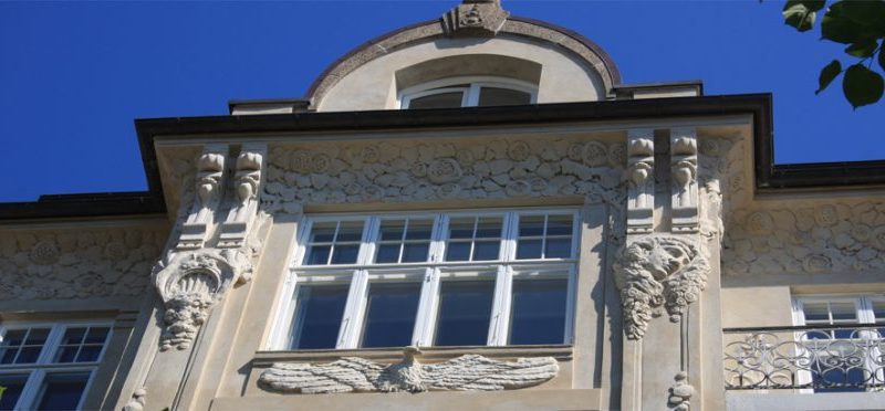 Rubin Stuk & Søn påtog sig opgaven. Vi var ikke længere kun i gang med en renovering, men en genskabelse af ejendommen, som den fremstod efter opførelsen for over 100 år siden. Mange af stukarbejderne blev skabt på ny efter gamle facadetegninger i lille målestok. For eksempel ørnene og delfinerne, som er symboler på styrke og klogskab. Desuden ses ansigtsrelieffer af Flora, forårets gudinde, stillet over for Bacchus, høstens vingud, som naturligvis er placeret nærmest værtshuset Frederik VI.