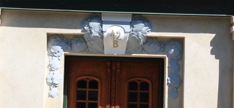 Meget karakteristisk for netop denne ejendom er de mange og store stukarbejder. Såkaldt cementstuk, hvor de store arbejder er støbt og efterfølgende monteret på facaden med jerndragere. Meget af dette er i årenes løb rustet og tæret væk, og har været forsvundet i al den tid vi beboere kan huske.