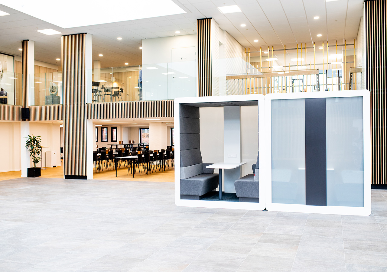 Det moderne gennemsigtige design med intime opholdshjørner, samtale-tekøkkener, telefonrum, traditionelt indrettede møderum, innovative afslappede møderum og indkig mellem etagerne giver brugerne en samhørighed og fornemmelse af tilstedeværelse, når man er i bygningen.