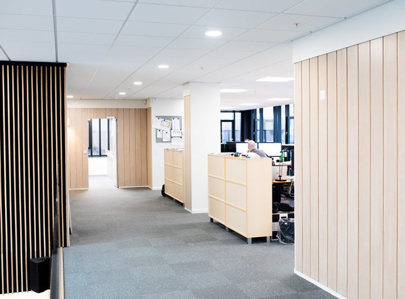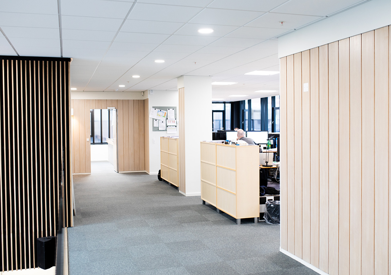 Det gamle, velbyggede kontor fra 1963 er blevet bygget om med brugerne i centrum. Ønsket var et skifte fra de eksisterende kontorganges korridorpolitik til et imødekommende, lyst og åbent kontor med et inspirerende og kreativt arbejdsmiljø. Sideløbende med den rumlige forandring, har der været fokus på energi og bæredygtighed. Med så stor succes, at en DGNB-certificering er opnået.