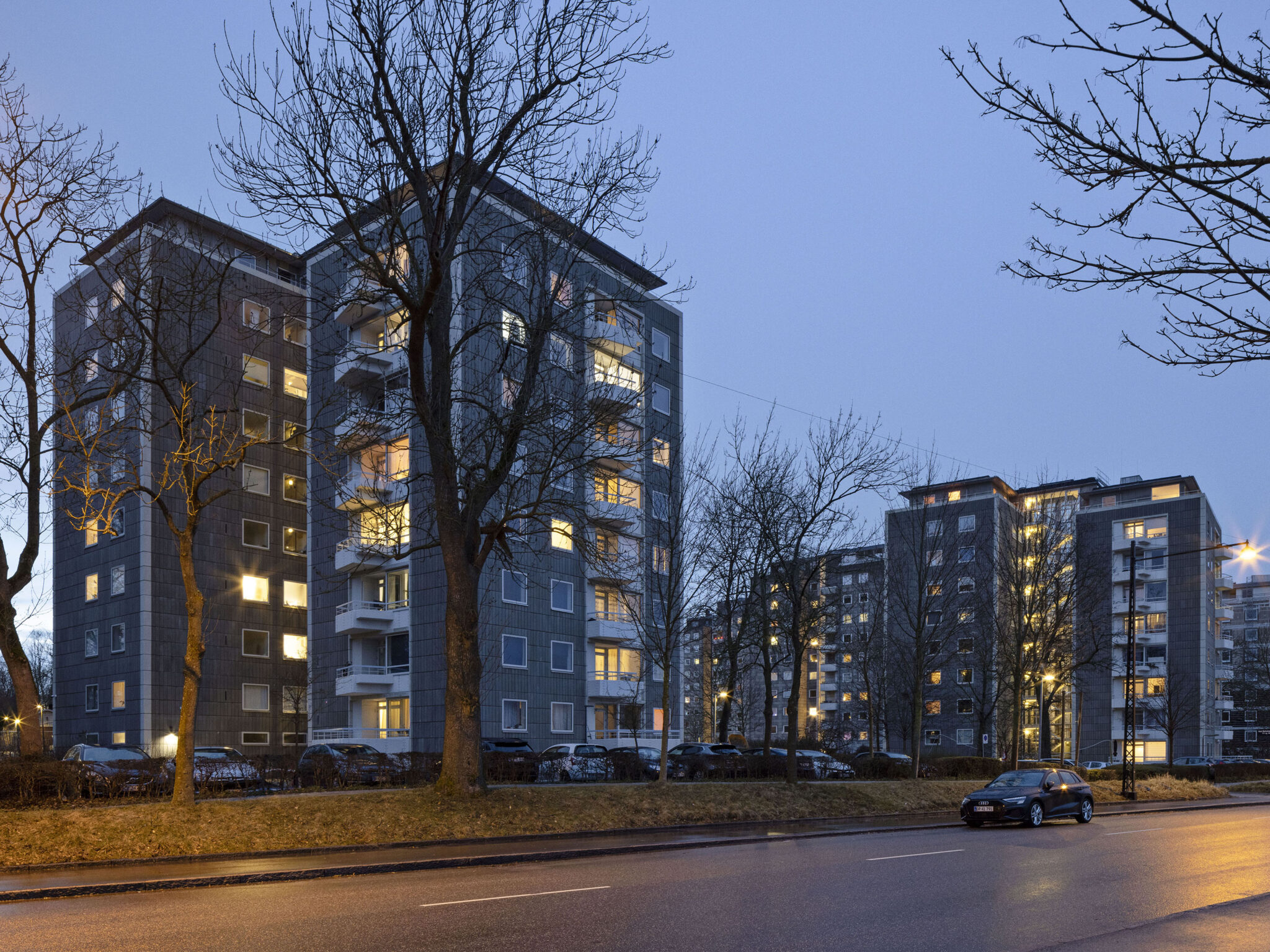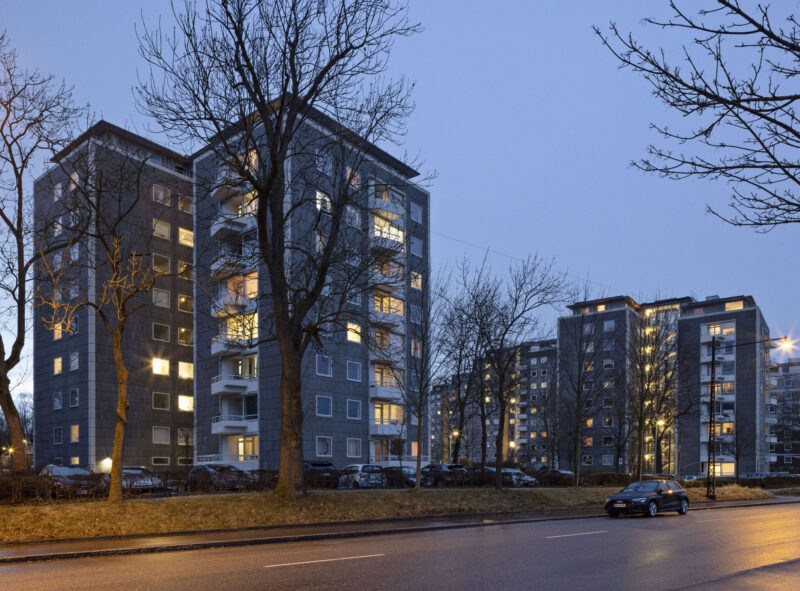 Bellahøj revitaliseres gennem den samlede transformation af bebyggelsen, som både omfatter boligrenovering og en nænsom istandsættelse og forbedring af det fredede parkanlæg, der omkranser bygningerne. AKBs seks Bellahøjhuse er tegnet af Svenn Eske Kristensen og fremstår med bebyggelsens mest raffinerede arkitektoniske udtryk. Arkitekturen udtrykker på fineste vis de nye boligidealer og den nye byggeteknik, som banede vejen for det moderne boligbyggeri. At bevare og genskabe facadernes oprindelige kvaliteter har været renoveringens vigtigste mål sammen med målet om, at beboernes dagligdag i boligen skulle forbedres. I dag fremstår bygningerne med smukke genskabte betonflisefacader og nye vinduer med slanke karm- og rammeprofiler som de originale. Men inden under fliserne er nu tilføjet et tæt og kraftigt isoleringslag, der øger varmekomforten og forbedrer indeklimaet i boligerne. De gamle badeværelser er ligeledes renoveret – sanitet og overflader er nye, men det er fortsat terrazzogulve og 15x15-fliser, der giver badeværelserne den oprindelige funktionalistiske karakter. På den måde genoplives AKB Bellahøj i en fin balance mellem bevaringsværdier og arkitektur på den ene side og fornyelse og boligkomfort på den anden. Ved sømløst at indarbejde nutidens boligidealer genfortæller renoveringen historien om Bellahøj som en moderne og fremsynet boligbebyggelse. De mange bevaringsværdier er fastholdt og styrket samtidig med at boligerne nu fremstår tidssvarende og attraktive for beboerne.