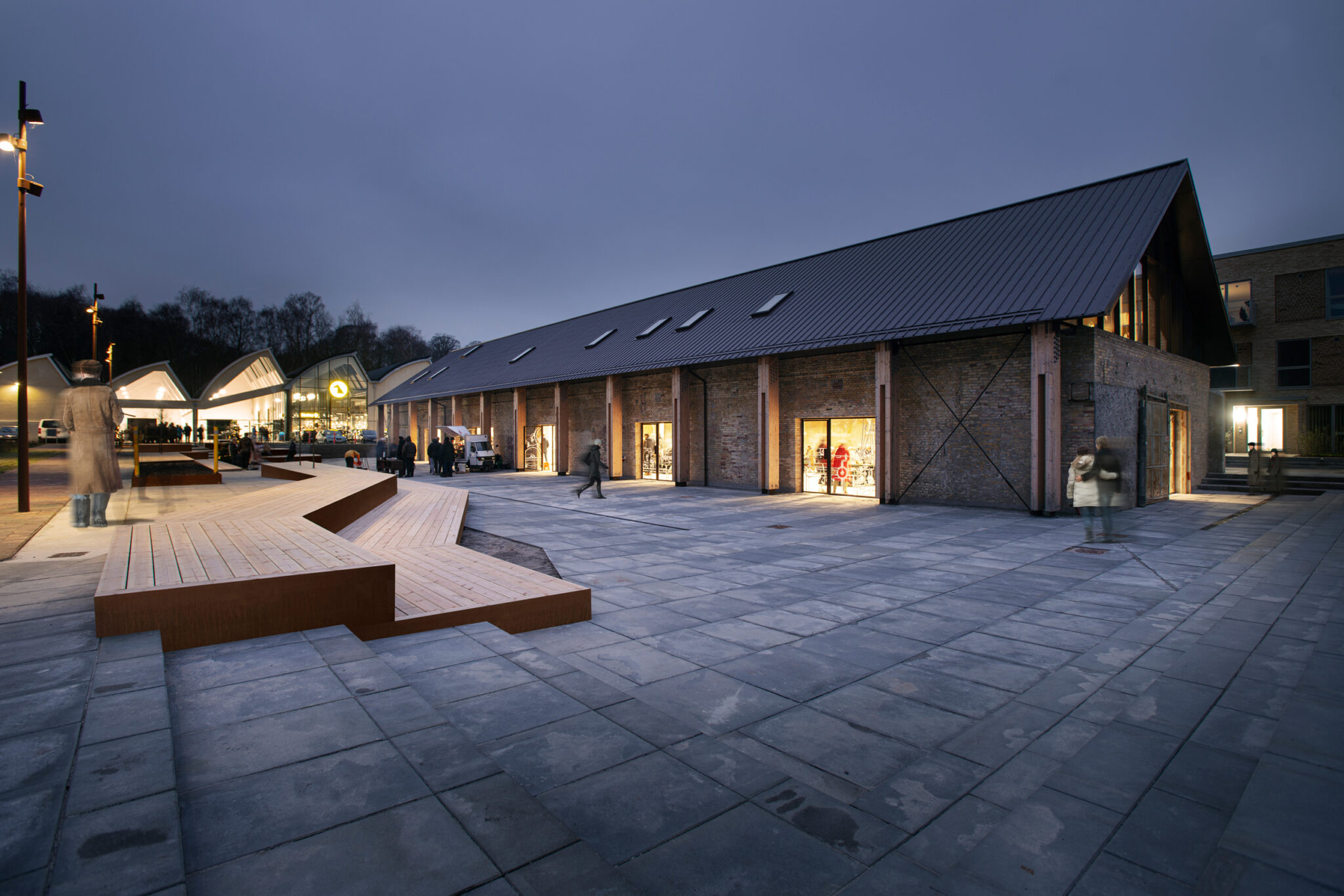 Aktivitetshuset indgår samtidig i en større helhedsplan, hvor transformation af eksisterende fabriksbygninger, grønne forbindelser, regnvandshåndtering og tæt kobling til natur og vand tilsammen understøtter en bæredygtig byudvikling.