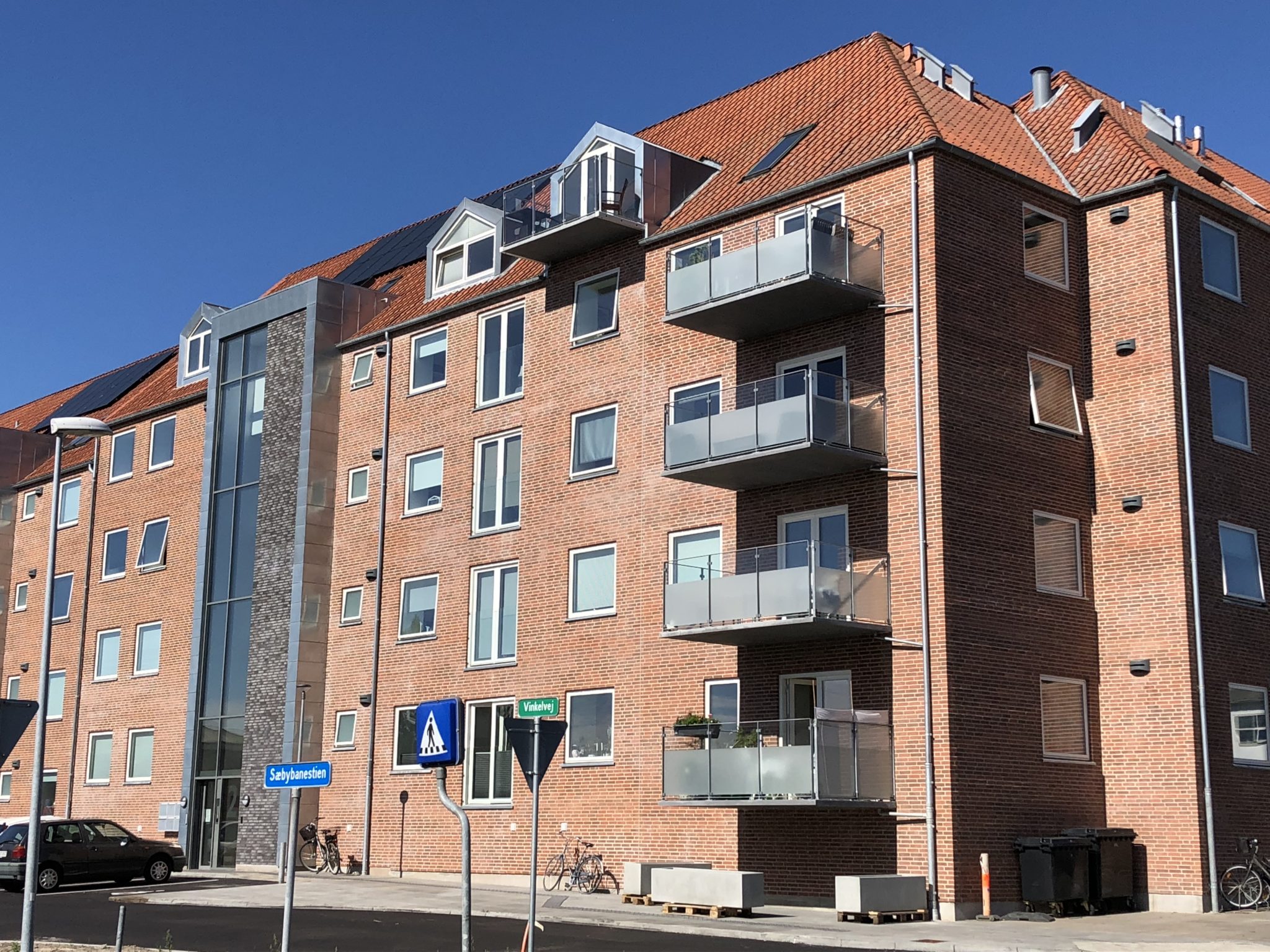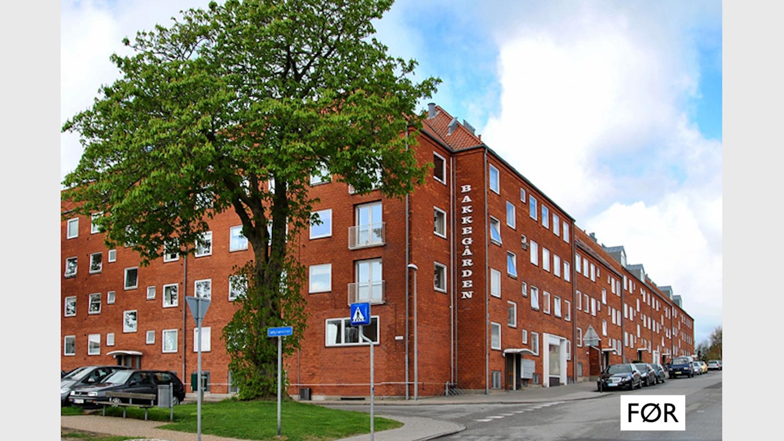 Vi kan stadig se gamle Bakkegården efter renovering trods de nye vinduer, der giver mere lys, de lettere altaner og elevatorerne, der har givet bygningen et charmerende udtryk med frontispicerne langs Vinkelvej.
