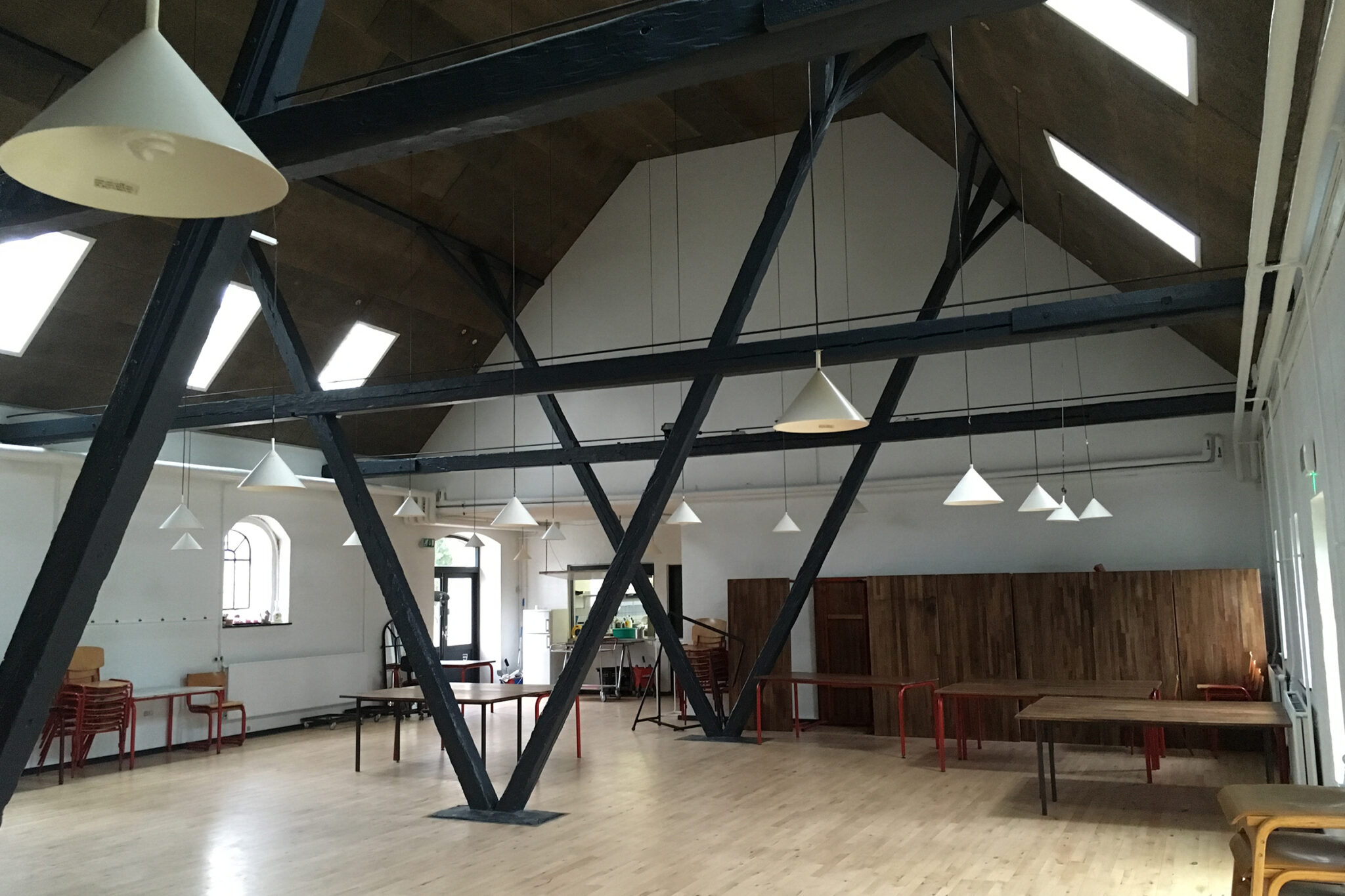 Konstruktionen gør det tydeligt for enhver, bygningskyndig eller ej, at her er tale om en storrumskonstruktion bygget til et andet formål end det nuværende forsamlingsrum. Bygningen fortæller gennem sin konstruktion tydeligt om områdets tidligere rolle som landbrugsområde.
