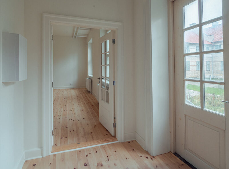 Det første informationsmateriale blev sendt ud til naboerne, da AAB overtog bygningen fra psykiatrisk hospital tilbage i 2019. Siden har der været masser af informationsaktivitet, samarbejde og inddragelse af de omkringliggende interessenter, frem til at renoveringen stod færdigt som boliger i oktober 2024.