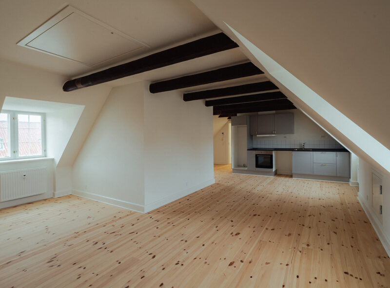 Når vi sammenligner de færdige bygninger med tilsvarende nybyg af almene boliger, har vi sparet projektet for omkring 78% i nye materialer.