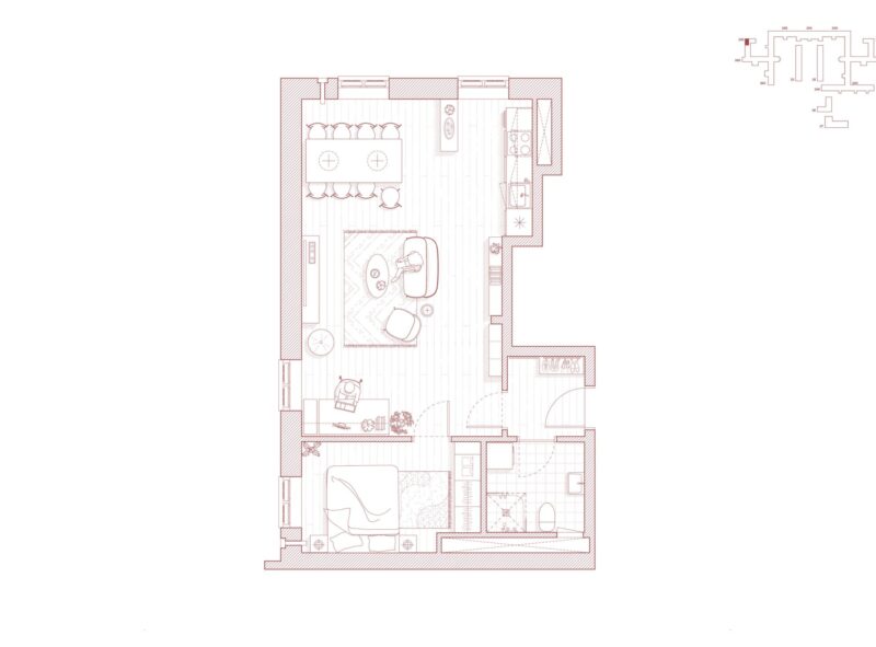 En hospitalsenhed er blevet til 231 meget forskellige boliger. Pga. fredningen har bygningernes geometri været bestemmende og retningsgivende for indretningen af de fleste af boligtyperne. Det er der kommet mange specielle boliger ud af. Der er stort set ikke to boliger, der er ens og i hver eneste bolig er der spor fra fortiden; gennemgående fredede vægge, gulvplanker med ekstra bredde i de parkvendte boliger, paneler på vægge, sengestuer som bolig, de oprindelige sprossede forsatsvinduer, slanke synlige rørføringer under de meget høje lofter mv.