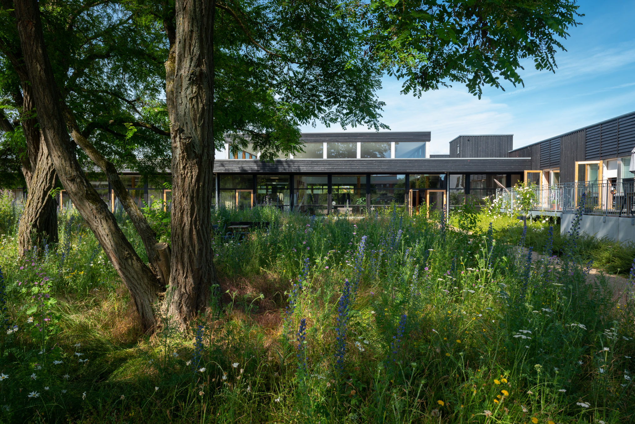 Den enestående beliggenhed er stimulerende i sig selv. Der er mulighed for at opholde sig mange forskellige steder: enten i den store sansehave – som i sig selv er underdelt i mindre zoner, eller i en af atriumgårdene – usynlig for omgivelserne, eller i egen privat forhave mod gaden. Haveanlæggene relaterer sig umiddelbart til nabolaget dvs. en park mod øst og villahaver mod nord og vest.