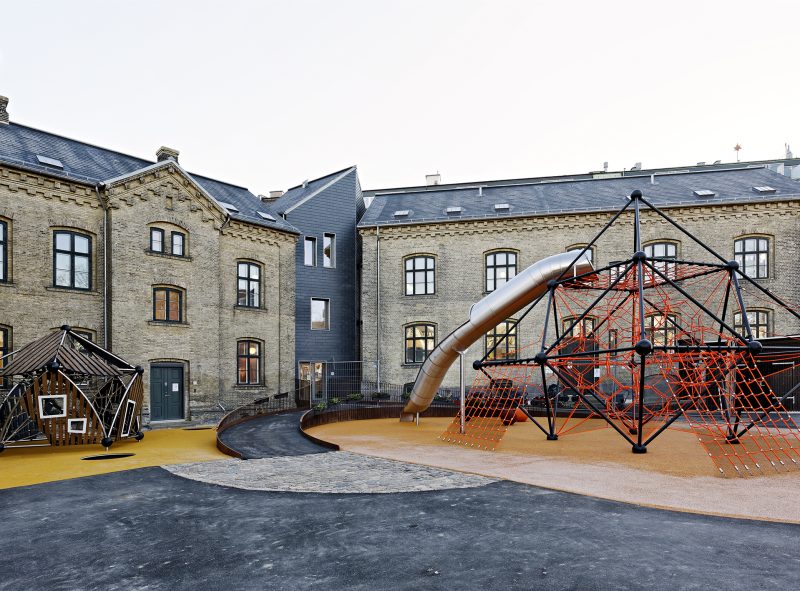 De fredede bygninger i det tidligere vandværk i Studiestræde er blevet ombygget til en helt ny type børneinstitution. Stedet tager nu form som en hel børneby bestående af en række fællesfaciliteter, samt af et antal mindre børnehuse, der hver har sin individuelle identitet og tryghed for den enkelte gruppe af børn. Institutionen rummer 20 børnegrupper fordelt på seks forskellige bygninger, der indeholder vuggestue- og børnehavefaciliteter, samt fælles multisal og storkøkken. Der er i alt plads til 415 børn, hvoraf en del af dem er udflytterbørn.