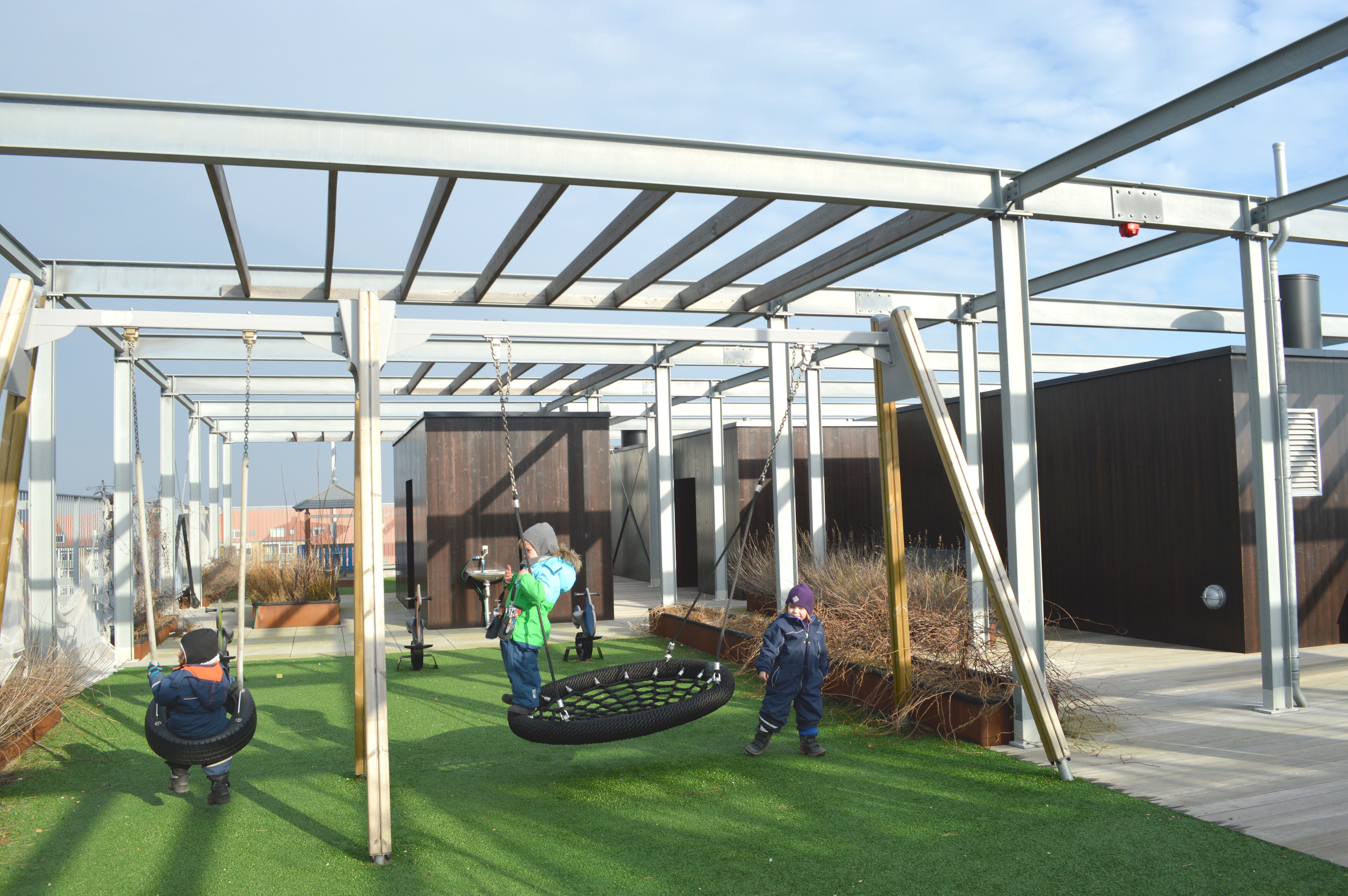 Det er eksemplet på, hvordan bæredygtighed handler om hele løsninger – om at optimere, genanvende og gentænke en eksisterende struktur. Man godt kan fortætte og optimere udnyttelsen af pladsen uden at gå på kompromis med fundamentale pædagogiske principper som nærhed og fleksibilitet.