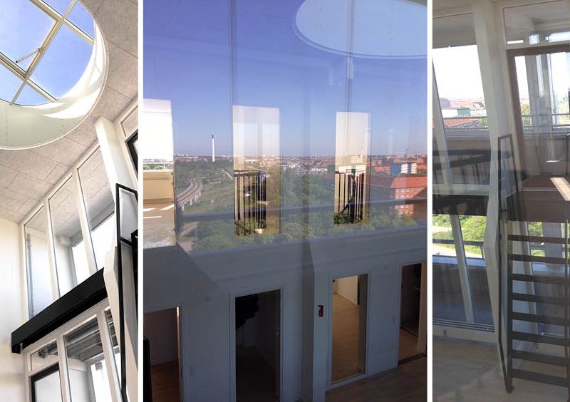 Boligerne ’på toppen’ er den seneste af en række omdannelser og renoveringer af det bevaringsværdige og velkendte modernistiske vartegn ved Hans Knudsens Plads – Kollektivhuset.