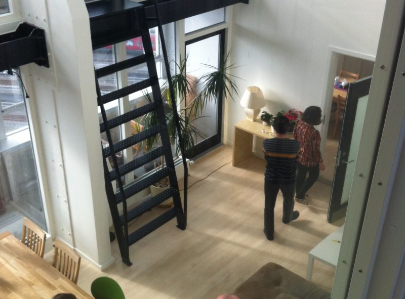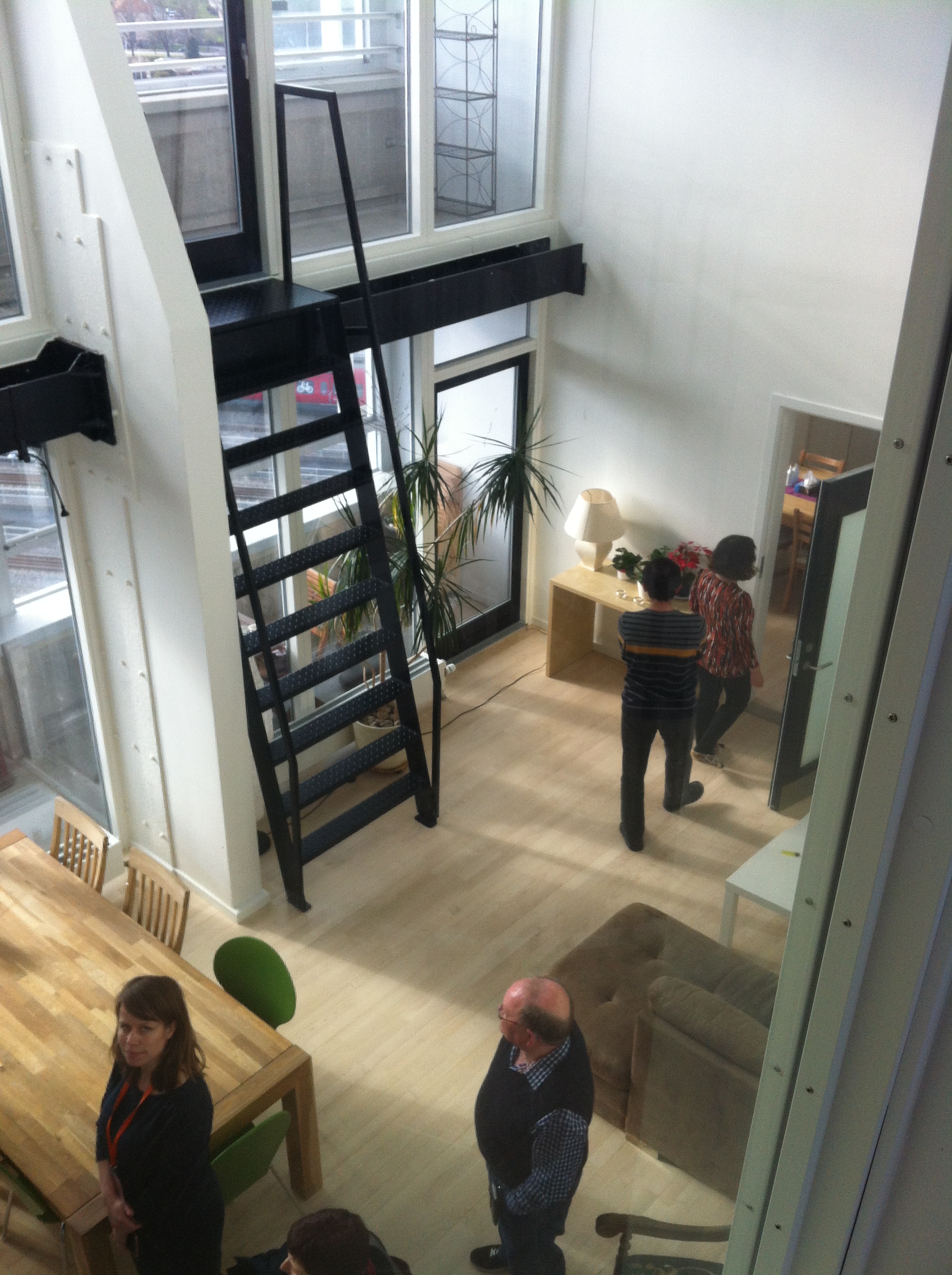 Boligerne i to etager deler tre og tre et stort dobbelthøjt fællesrum med en dobbelt vestvendt glasfacade, der giver en spektakulær udsigt over by og himmel. Denne nytolkning af byboligen er forankret i husets oprindelige kollektivtanke med fællesrummet som indbyder til forskellige aktiviteter beboerne imellem. Boligernes to etager giver samtidig mulighed for at beboerne kan “trække sig tilbage” og nyde total privathed på den øverste etage.