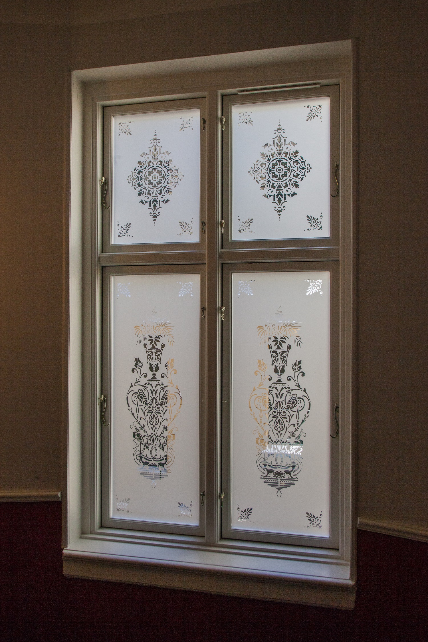 En af de uortodokse beslutninger i forbindelse med renoveringen var at udskifte de oprindelige vinduer med ny-producerede vinduer, som blev udført som replika af de oprindelige med både nye rammer og ornamenterede glas.