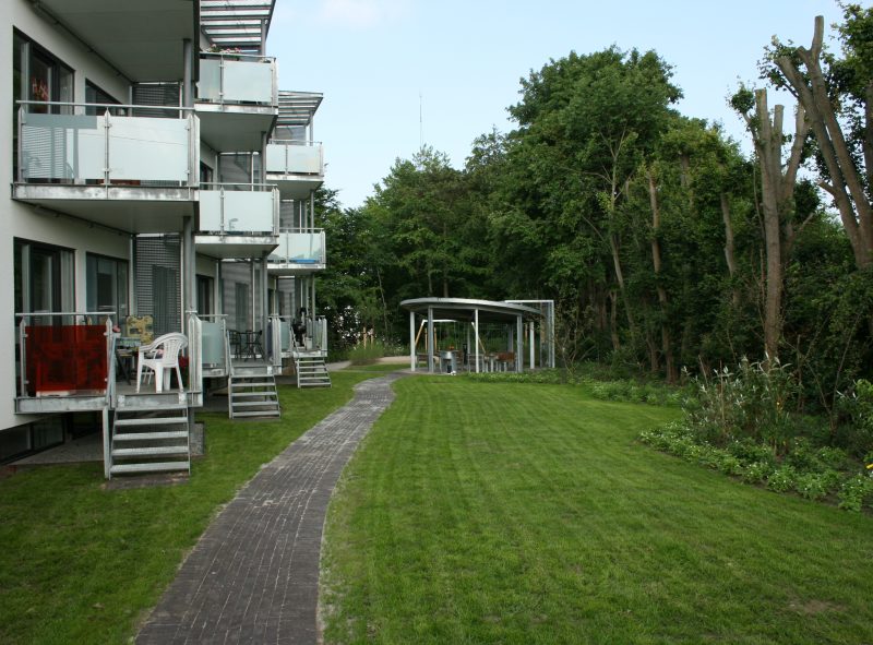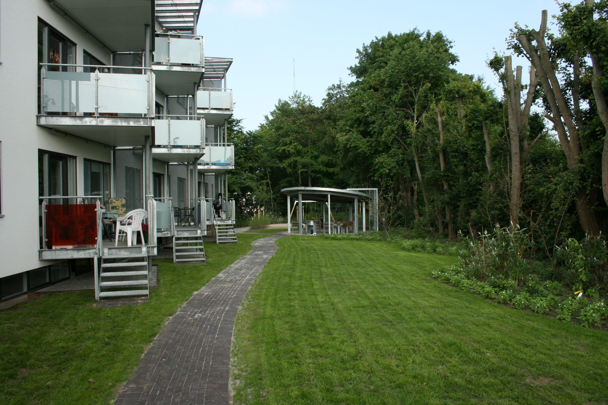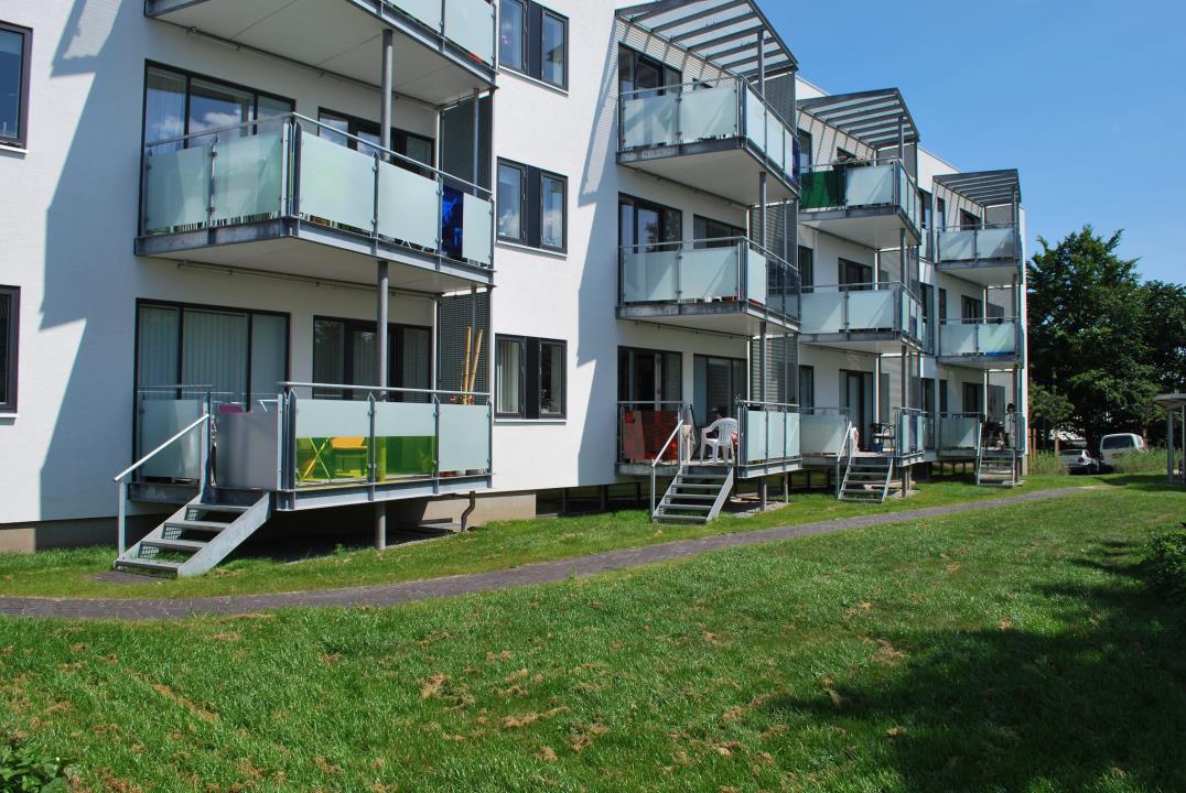 Der er udført en gennemgribende byggeteknisk opretning af bebyggelsen i forbindelse med ombygningen fra 24 små og nedslidte 1-rums boliger med et udsat boligsocialt miljø og betydelige udlejningsvanskeligheder til 15 moderne almene boliger, der med tilgængelighed i form af nyetableret elevator og brede altangange samt nyanlagte havearealer med fælles opholdsmuligheder for børn og voksne, nu henvender sig til alle aldersgrupper, det være sig enlige eller familier. Boligerne er enkelt disponerede med indgang fra nord og et storrum med entre og køkken/stue i ét, hvorfra der er adgang til altan/ fransk altan. Dertil kommer wc/bad der er indrettet med henblik på at kunne benyttes af kørestolsbrugere og forberedt til installation af vaskemaskine og tørretumbler.