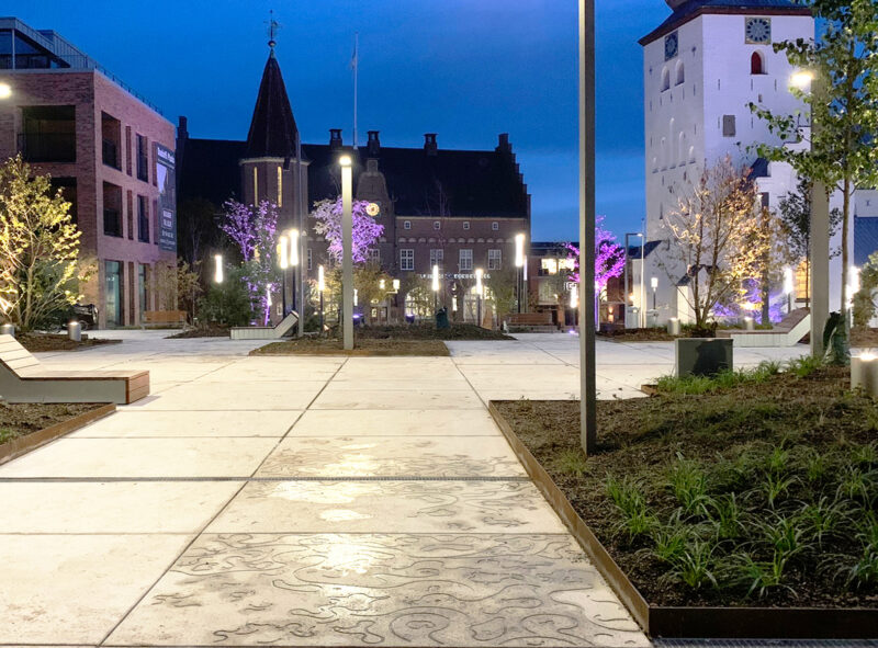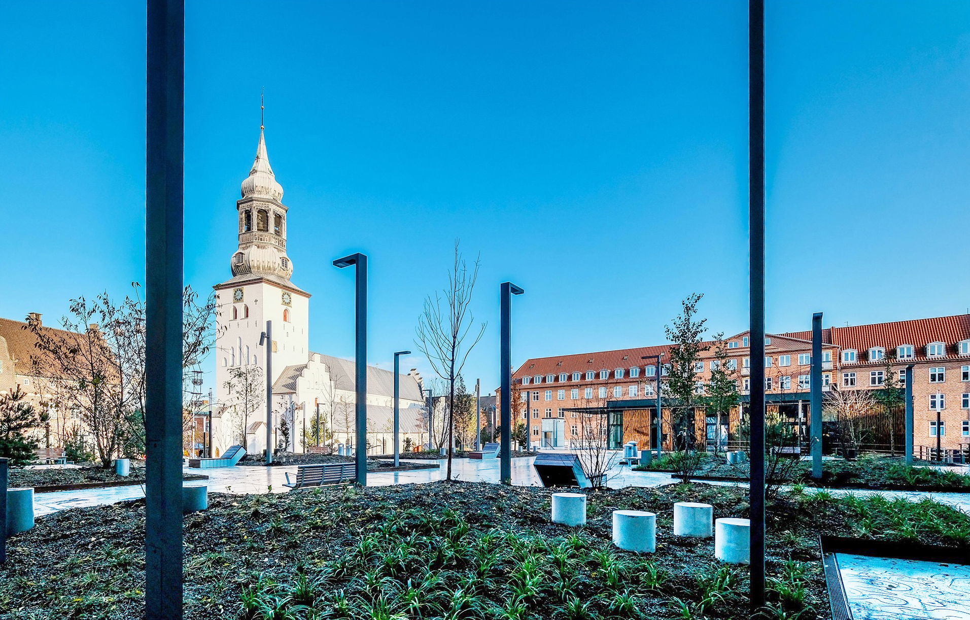 En stor del af området bliver en attraktiv, grøn plads, der skriver sig ind i byens karakteristiske netværk af byrum og medvirker til at sammenbinde gågaderne. Området er en omdannelse fra et gråt og kedeligt parkeringsareal til en plads, der er etableret oven på en offentlig tilgængelig p-kælder. I kanten af pladsen etableres der butikker, caféer og boliger, som skal være med til at understøtte midtbyens by- og handelsliv