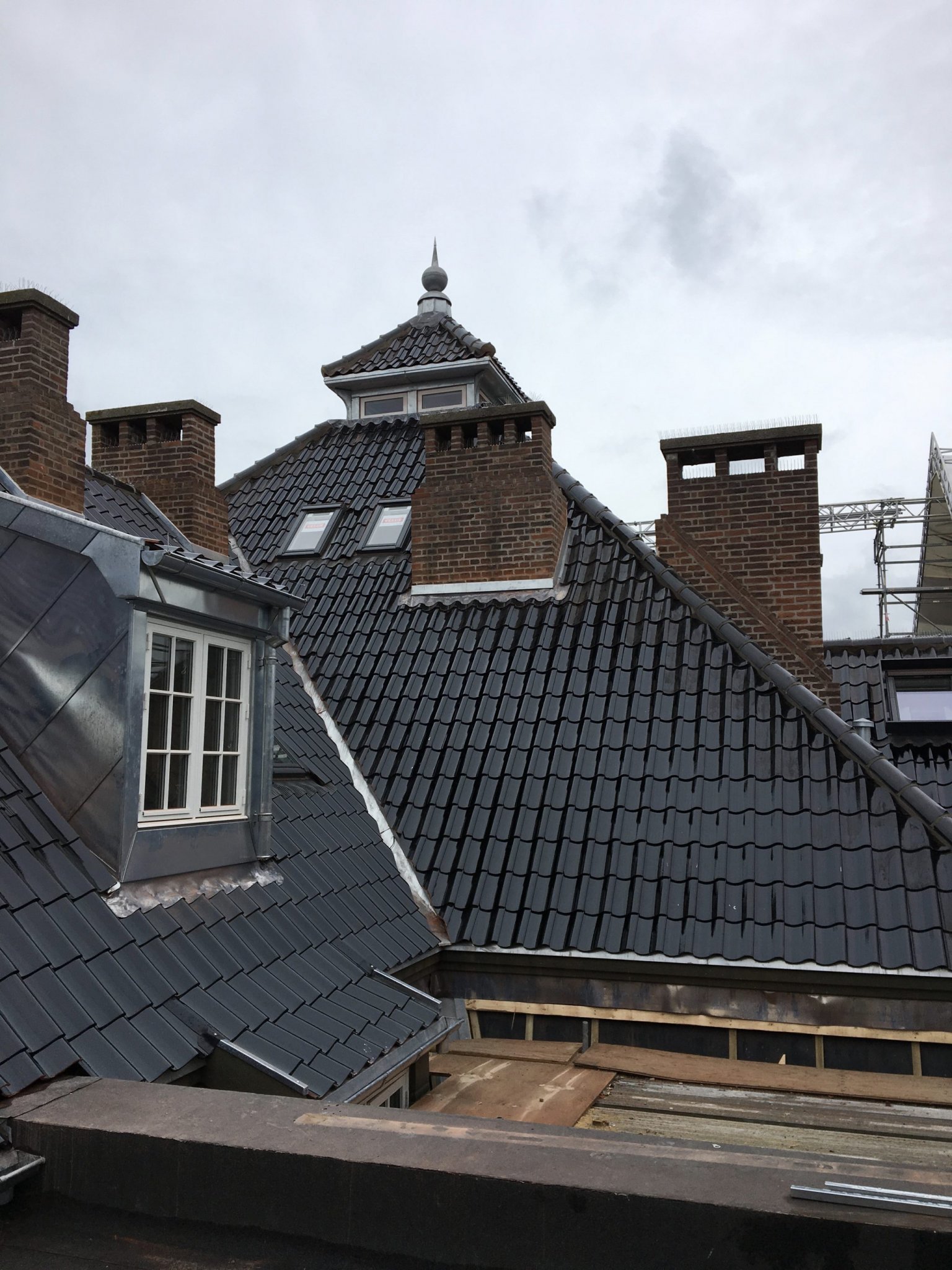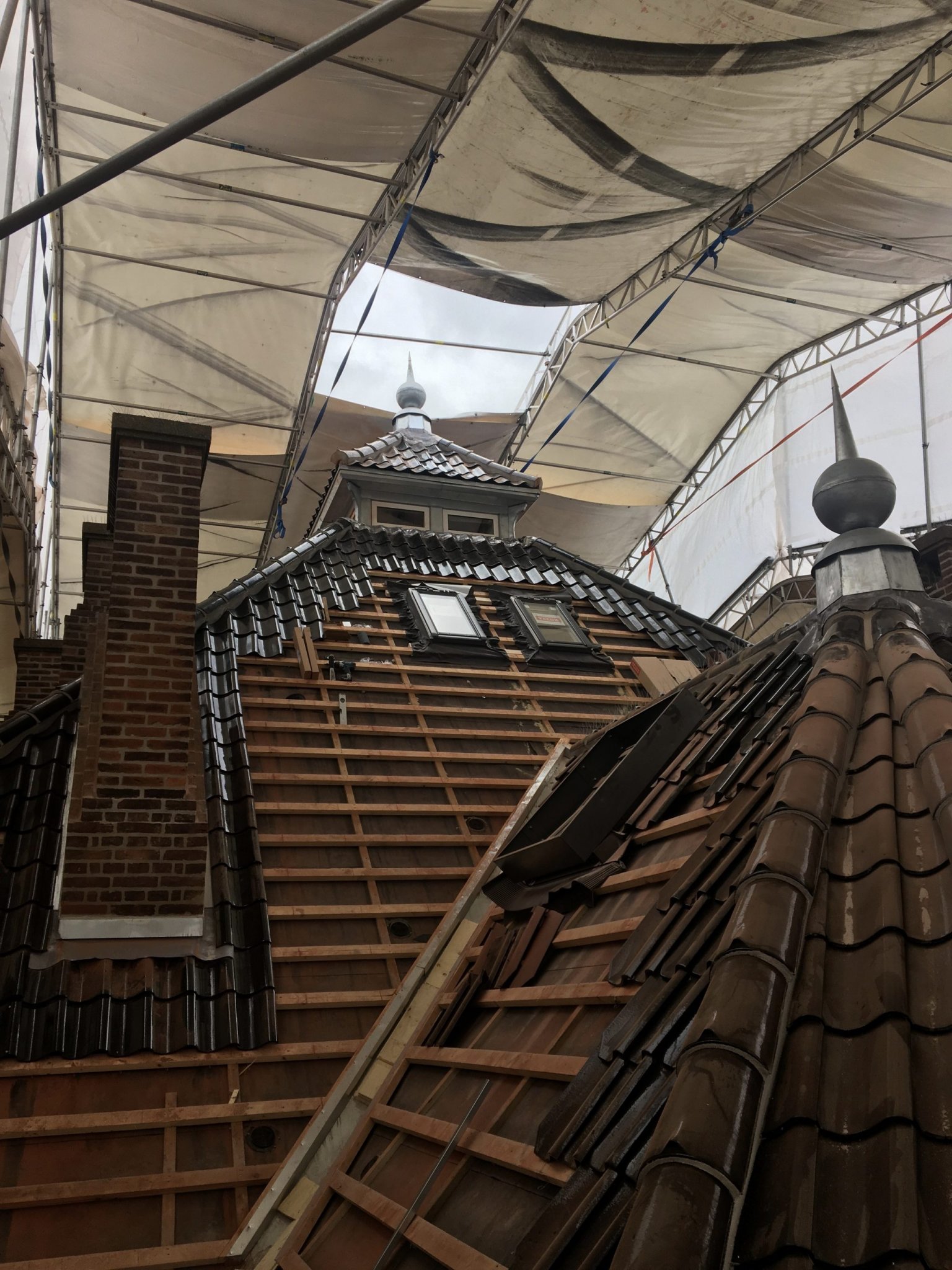 Selvom Bülowsgade 68 ved sin opførelse var en meget moderne bygning, har de 100 år, der er gået siden, gjort den forældet. Dette kunne tydeligt ses i taget, hvor de engang så smukke teglsten var blevet afskallede og matte. Under taget kunne man nemt fornemme vejret udenfor, da der ikke fandtes nogen form for isolation. Derfor blev hele taget fjernet, gamle sten blev erstattet med nye, nøje udvalgt for at komme så tæt som muligt på den oprindelige form og blankhed, og det hele blev velisoleret. Også de smukke skorstenspiber, der er så kendetegnende for bygningen, blev renoveret, understøttet og udstøbt. De tunge skorstene, på nær en enkelt, er ikke længere i brug og kunne være erstattet med attrapper, men blev bevaret, fordi de udgør en vigtig del af bygningens helhed og historie.