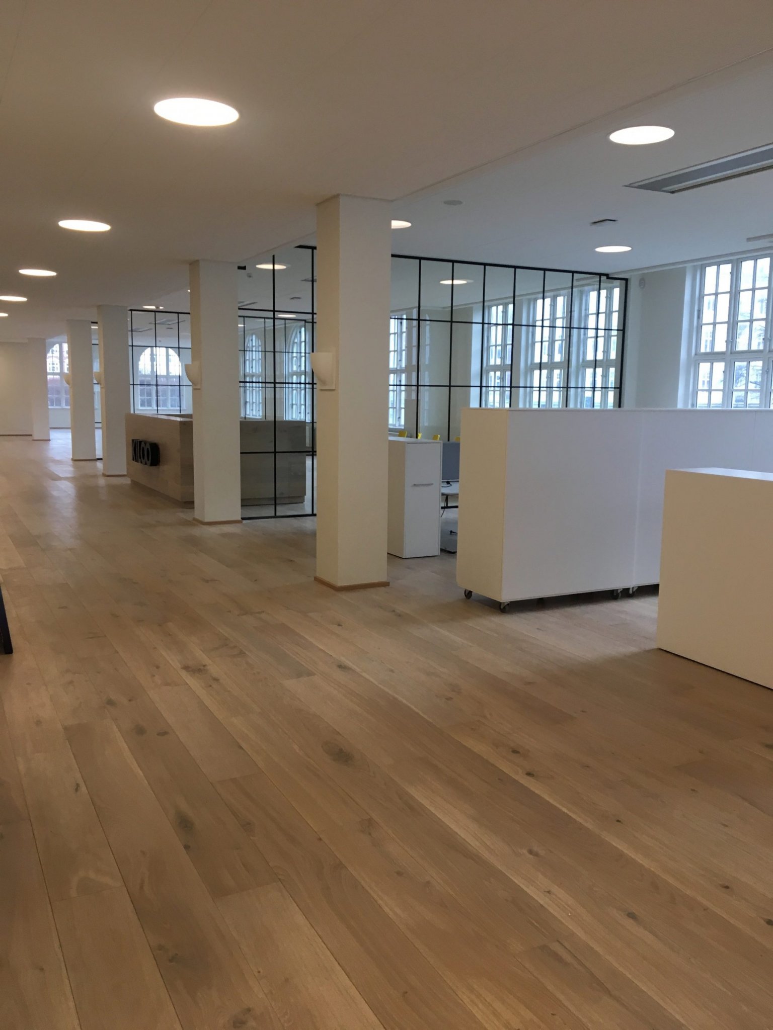 Hvor facaden ser så godt som original ud, er bygningen indvendigt blevet moderne og strømlinet med specialdesignede døre til møderum og skillevægge med fyldninger. Gulvene er for det meste egetræ, og glasvæggene er lavet i New Yorker-stil.