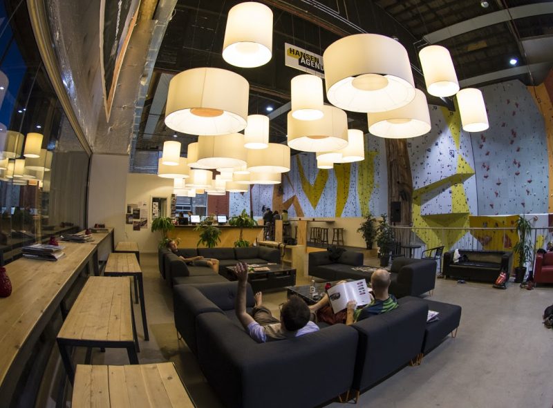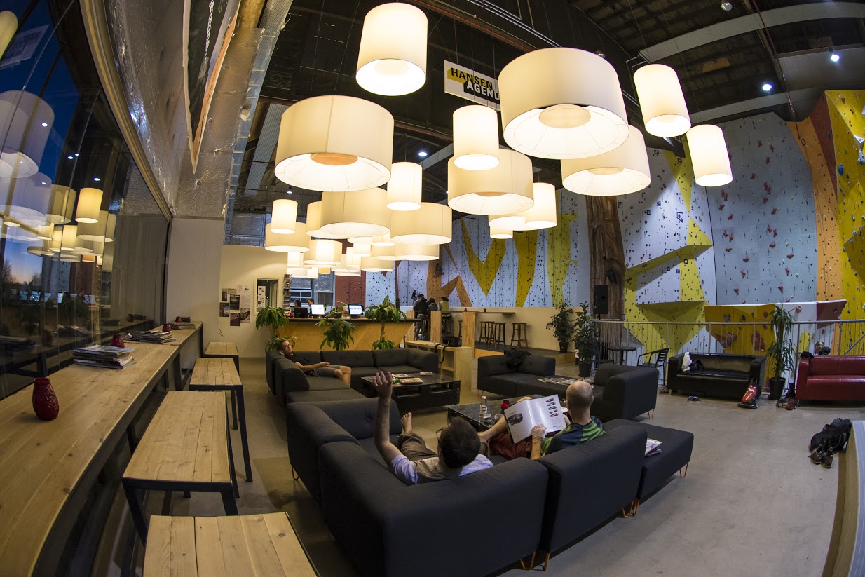 Ved at bevare de høje vinduespartier som løber ubrudt langs store dele af hallens sydside og med store ovenlyspartier i loftet, har man skabt et stort og lyst offentligt rum, hvor klatrevæggene danner et spændende arkitektonisk landskab.
