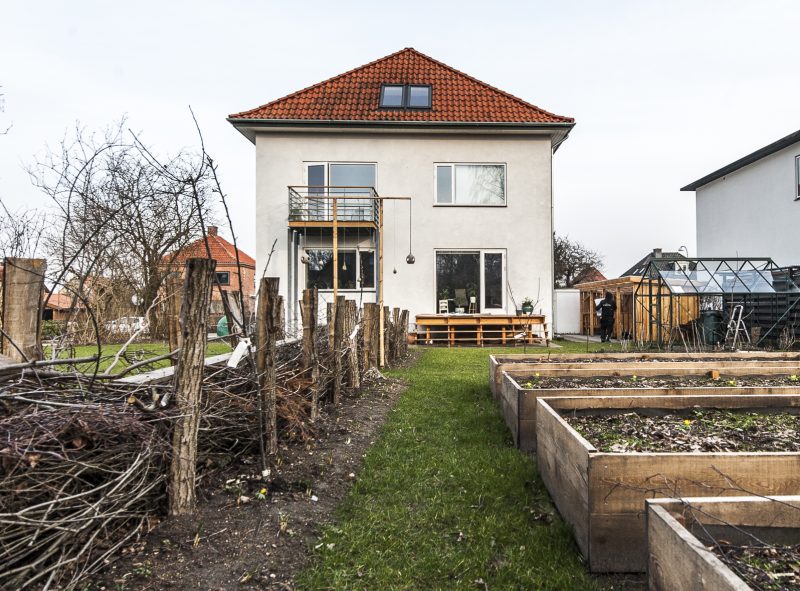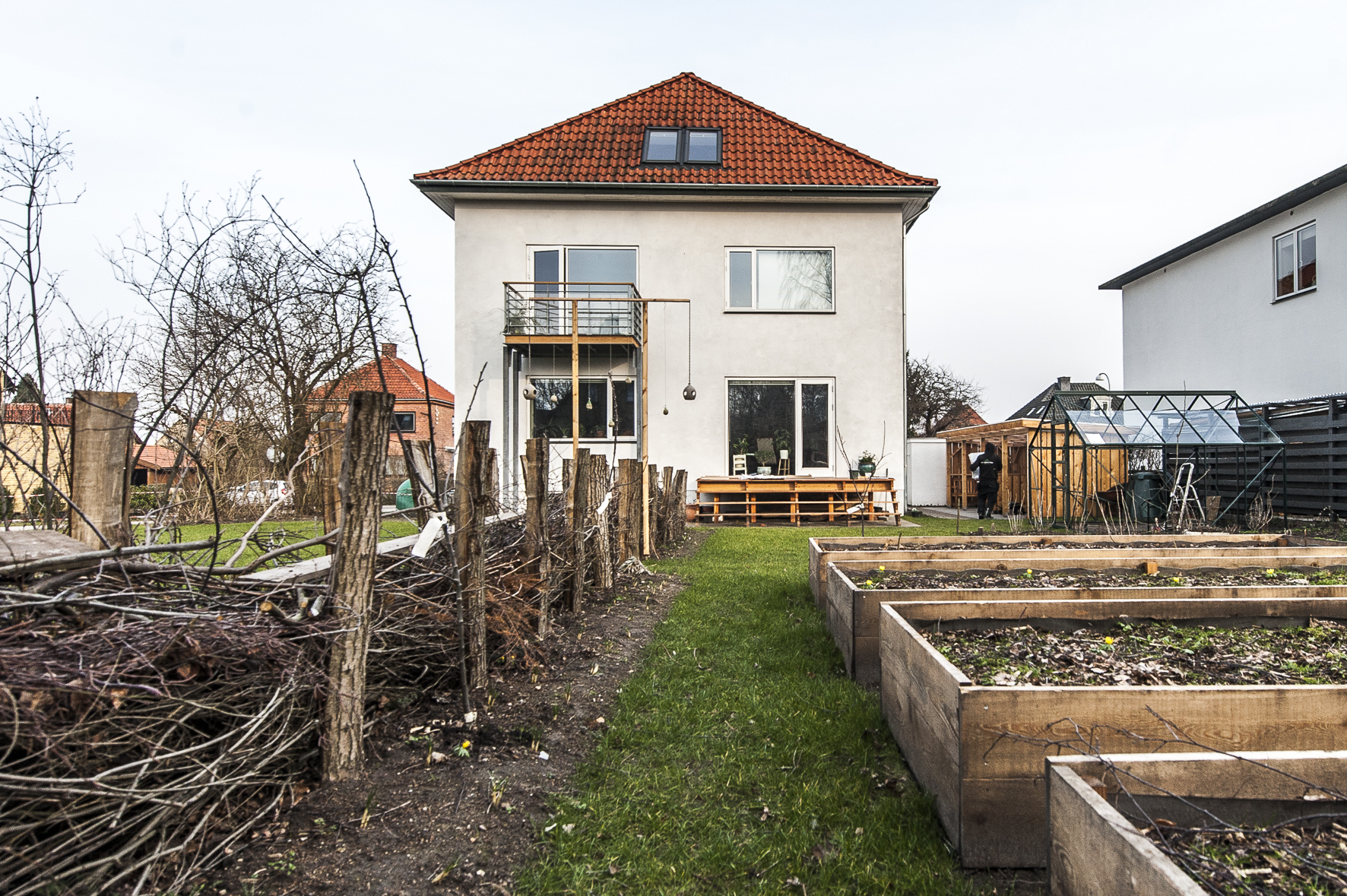 Når man ankommer til Bøgevej 9 virker huset set fra vejen velholdt, men set fra en æstetisk synsvinkel er manglen på pirrende arkitektonisk sexappeal påtrængende. Det indtryk bliver der godt og grundigt vendt op og ned på, når man kommer ind i haven. Her formidler en ny altan og en stor terrasse af træ på en overbevisende måde samspillet mellem havens frugtbare højbeder og husets opholdsrum.
