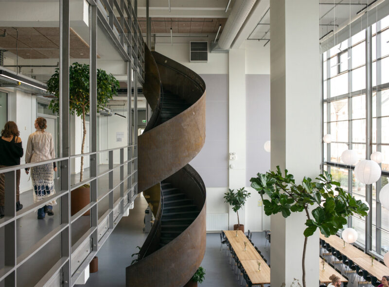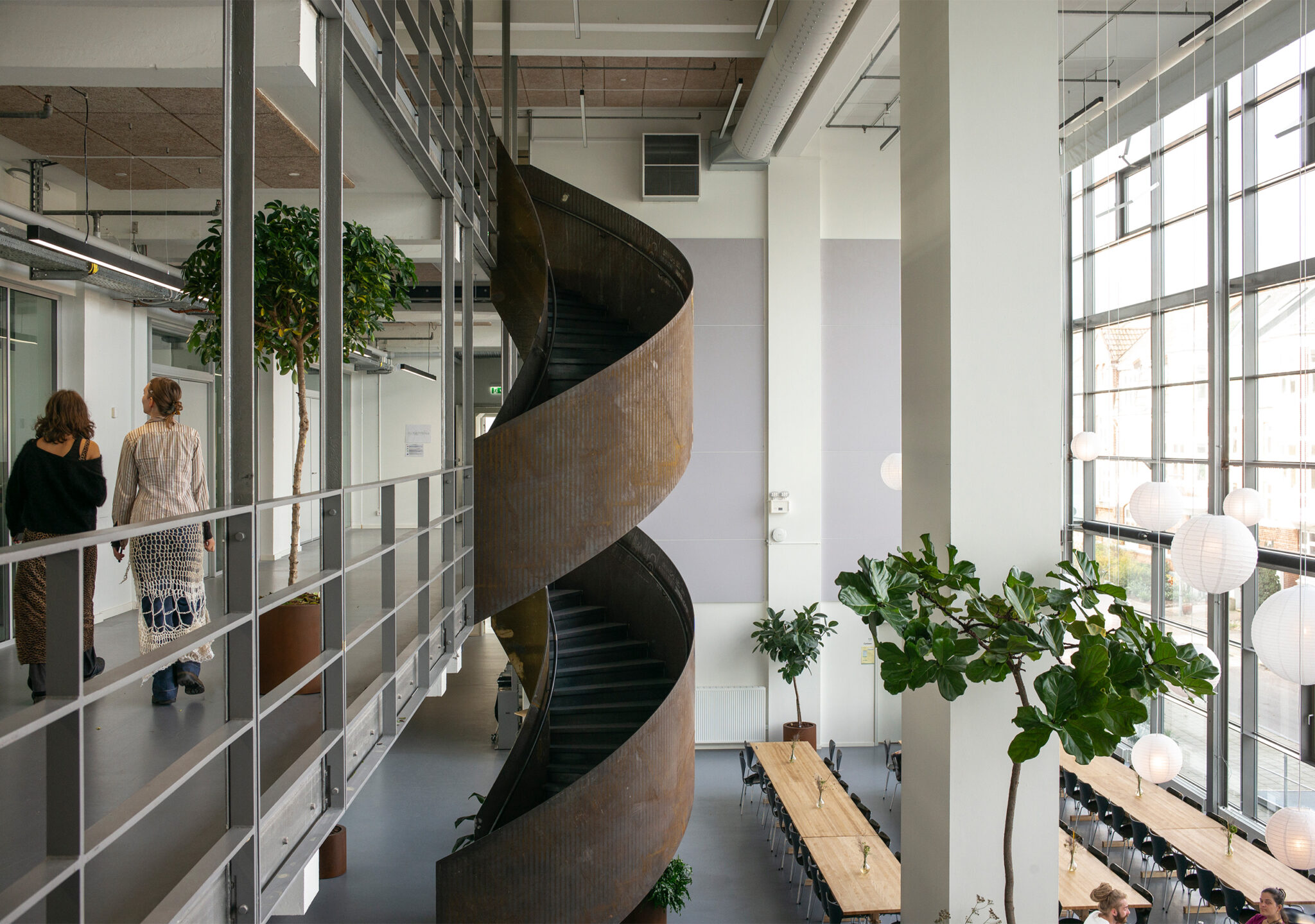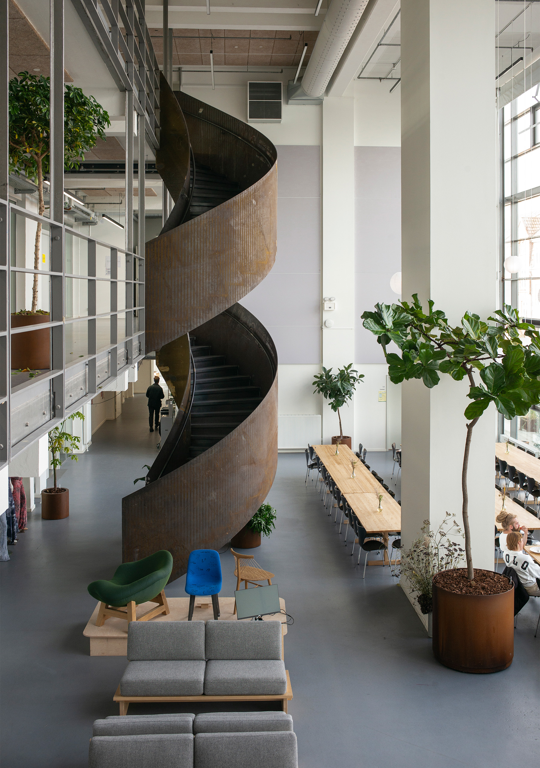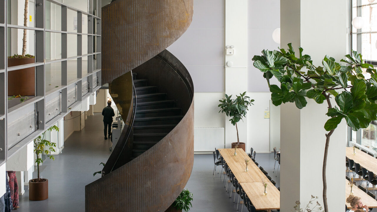 Bygningens layout er skabt med udpræget fokus på husets brugere med henblik på at fremme trivsel og sociale interaktioner – fra de store fællesområder, der fremmer uformelle møder og diskussioner, til de mere intime grupperum, hvor studerende kan arbejde koncentreret i mindre teams. De studerendes trivsel er en vigtig del af skolens pædagogik, og bygningens design spiller en central rolle i at fremme et åbent og inkluderende miljø, hvor kreativitet kan blomstre. Dette er et udtryk for, hvordan moderne designprincipper i høj grad tager højde for menneskers behov for sociale interaktioner i deres fysiske arbejds- og læringsrum.