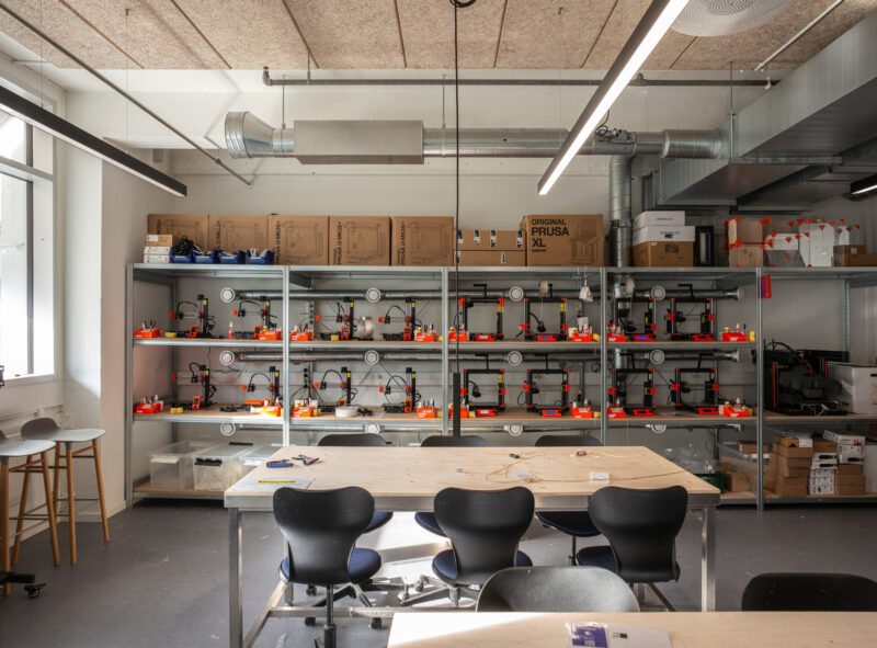 Den teknologiske integration understøtter ikke blot funktionaliteten, men også æstetikken i bygningen. Smarte, indbyggede teknologier er usynlige i det ydre design, hvilket gør dem til en naturlig del af de studerendes oplevelse uden at forstyrre den æstetiske helhed. Bygningens moderne, digitale løsninger er med til at skabe et dynamisk læringsmiljø, hvor studerende kan udforske og udvikle de nyeste teknologier inden for design.