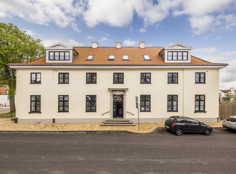 Nødvendige moderniseringer som f.eks. nyt vingetegltag, , nye vinduer, døre, tagkviste og altaner samt tilgængelighedshensyn og afskærmning til affald og varemodtagelse er udformet nænsomt og i en høj kvalitet – med henblik på at opnå et flot, harmonisk helhedsindtryk.