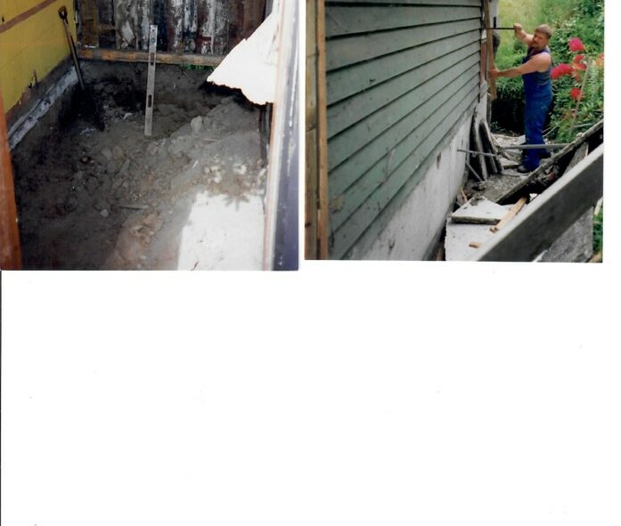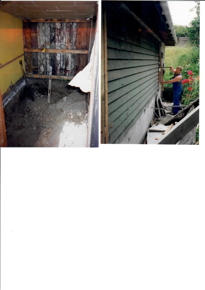 Anneks: Lofthøjden gjort større, færdiggulv sænket 400mm. Der var tidligere et trægulv på strøer direkte på jord. Det havde stået alle årene med ventilation til det fri. Der måtte en lufthammer til hugge jorden i stykker. Jorden blev planeret med en sandpude. Der på 240mm polystyren plader, plastisk membran og flydende paketgulv. Gamle skabe samt køjesenge tilpasset. Væggene: Rustik brædder indvendig isolering, vindtæt pap, brædder en på to. Brædderne en på to genvendt fra hoved huset (genanvendt fra væggene i hovedhuset). Loftet ligeledes isoleret.