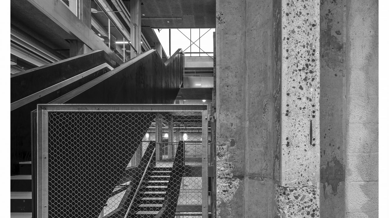 De nye bygningsdele i huset er udført med stor respekt for det eksisterende hus og de traditionelle materialer, det er opført i. Nye materialevalg er konsekvente hele bygningen igennem, og der er bevidst arbejdet med at skabe et ærligt udtryk, der taler sammen med de eksisterende rå overflader fremfor en forfinet kontrast. Eksempelvis står væggene i blottet beton, ligesom der ikke er udført nedhængte lofter i de store kontoretager, men i stedet fastholdt en stor rumhøjde så bygningens industrielle udtryk underbygges.