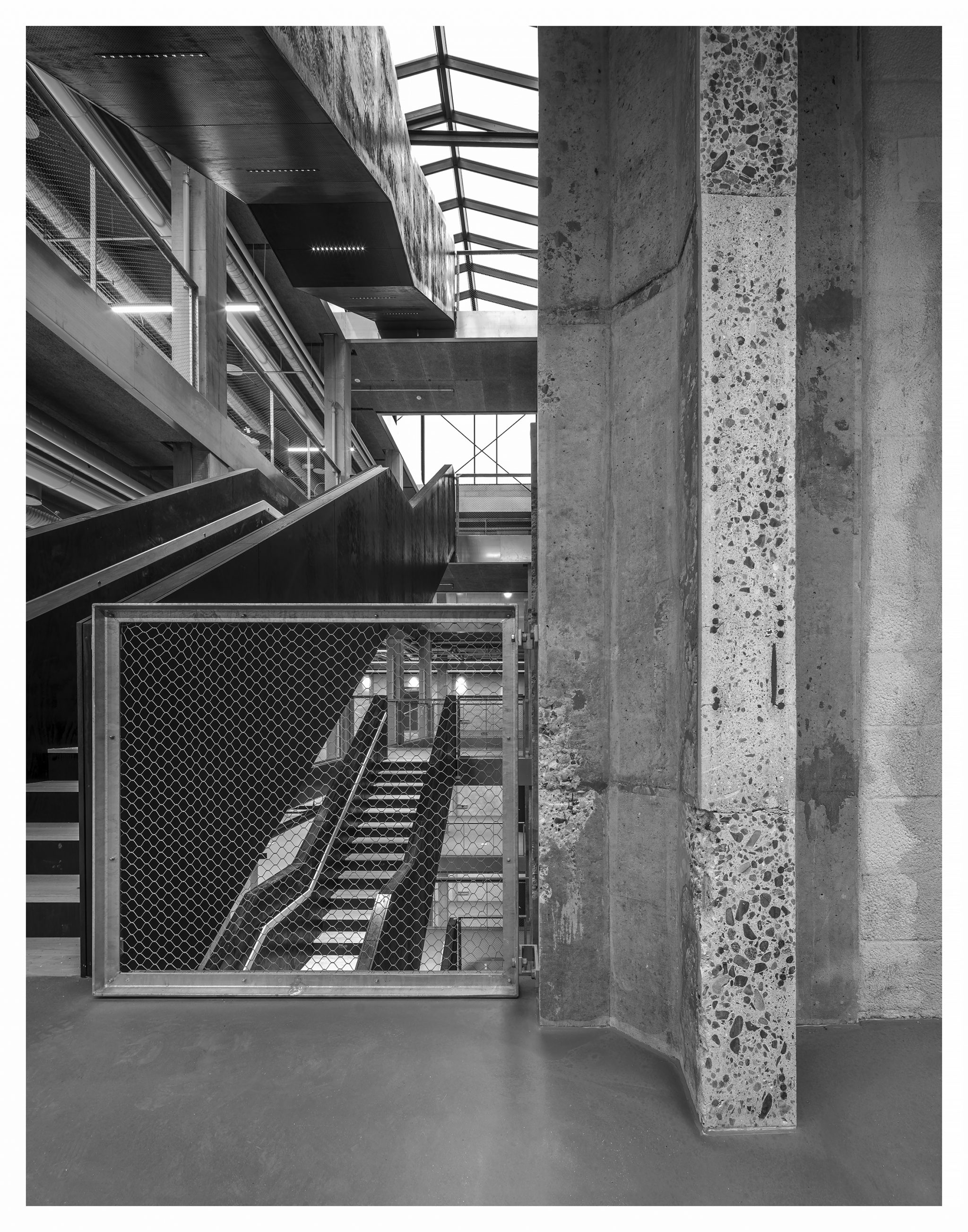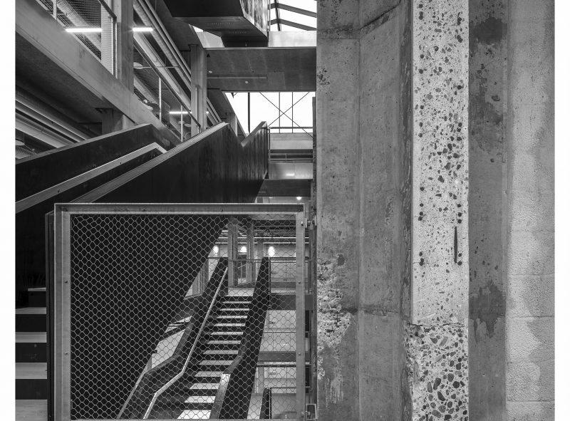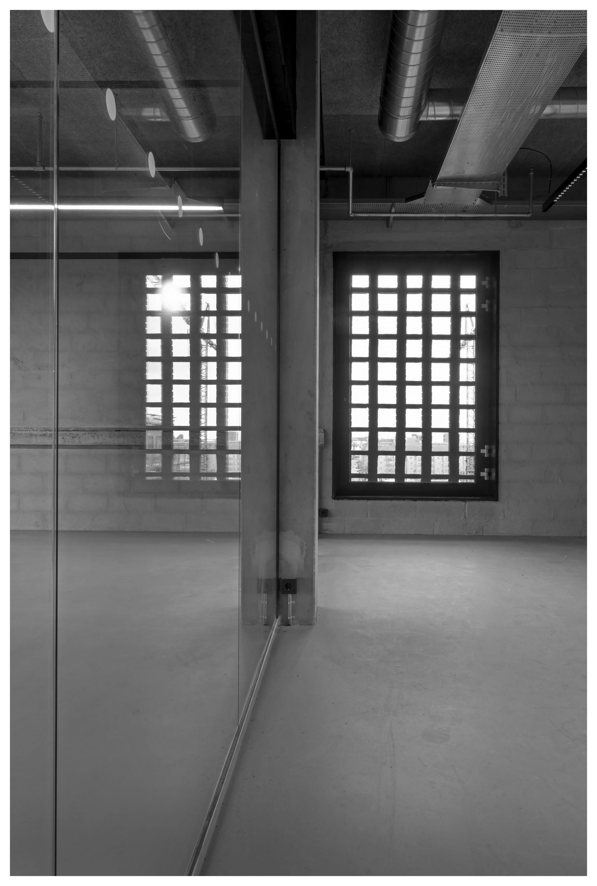 Indenfor er flere af bygningens oprindelige søjler og betonvægge bevaret og spiller sammen med kontorets øvrige indretning, der på moderne vis bærer præg af industriområdet. Da siloen oprindeligt ikke har haft etagedæk er alle niveauer i bygningen nye, hvilket har givet mulighed for at skabe store rumhøjder, der komplimenterer de eksisterende industrielle strukturer.