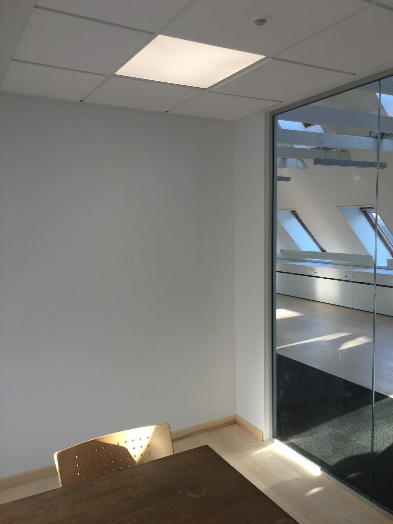 Dette projekt ser ikke spektakulært ud, der er ingen wauw-effekt, ingen flotte billeder at tage. Når man kommer ind ligner det et hvilket som helst andet nyrenoveret kontor med akustiklofter og sædvanlige skillevægge i gips og glas. Måske lægger man mærke til, at der ikke er nogen synlig ventilation? Måske brugerne i starten tænker over, at indeklimaet er godt, uden at de kan forklare præcist hvorfor? Men det interessante i dette projekt er netop, at det nyskabende og innovative er skjult og først bliver klart med tiden, når kontoret bruges, og man får behov for at ændre på indretningen…
