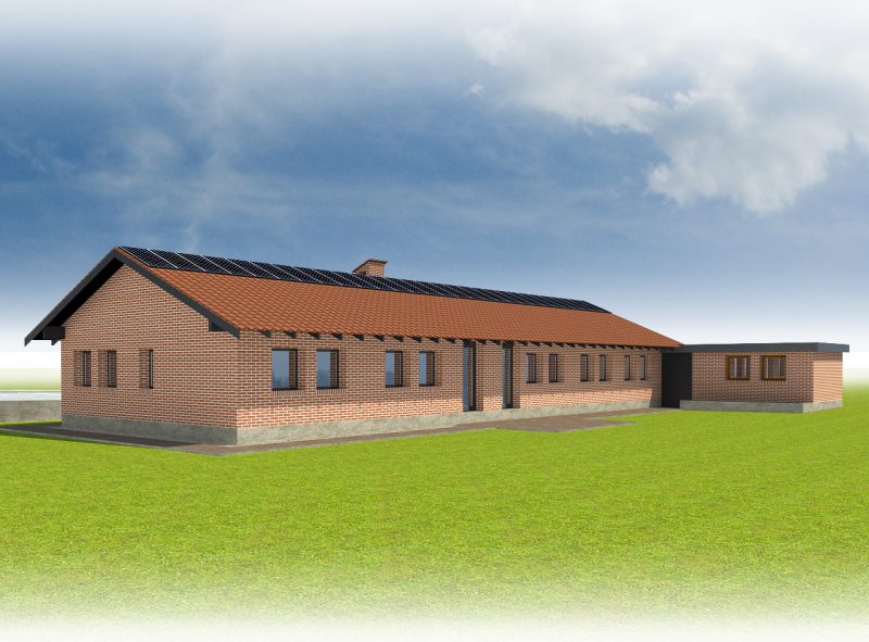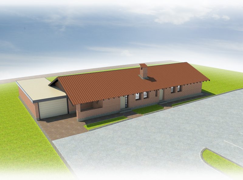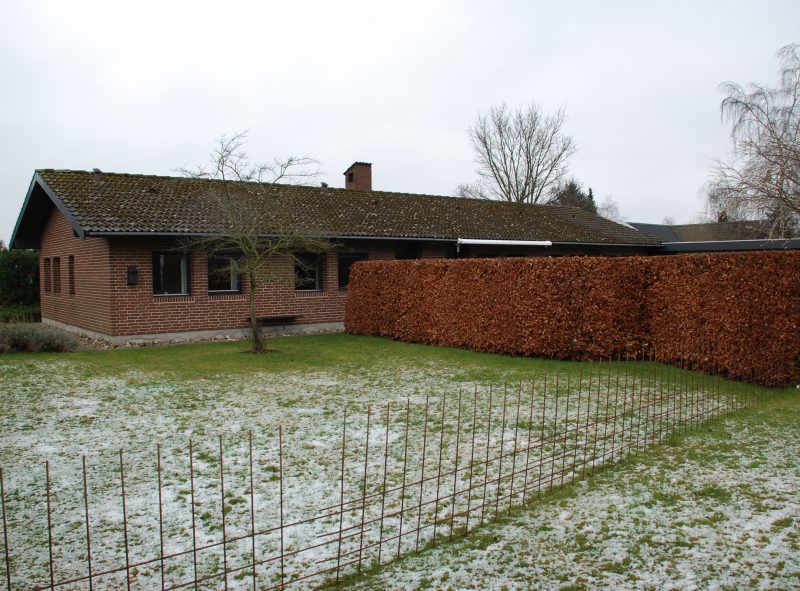 Hus er opført i 1982 med en bedre isolering end datidens krav. Men oliefyret var udtjent, fjernvarme var ikke en mulighed, og der var lidt indtrængning af kold luft under taget ved undertryk og et ønske om et ventilationsanlæg. Løsningen består af nyt tag, ny dampspærre, 400 mm glasuldsgranulat på loftet, en jord-til-vand varmepumpe, et solcelleanlæg, der er integreret i taget og et ventilationssystem med varmegenvinding og med ny emhætte tilsluttet.
