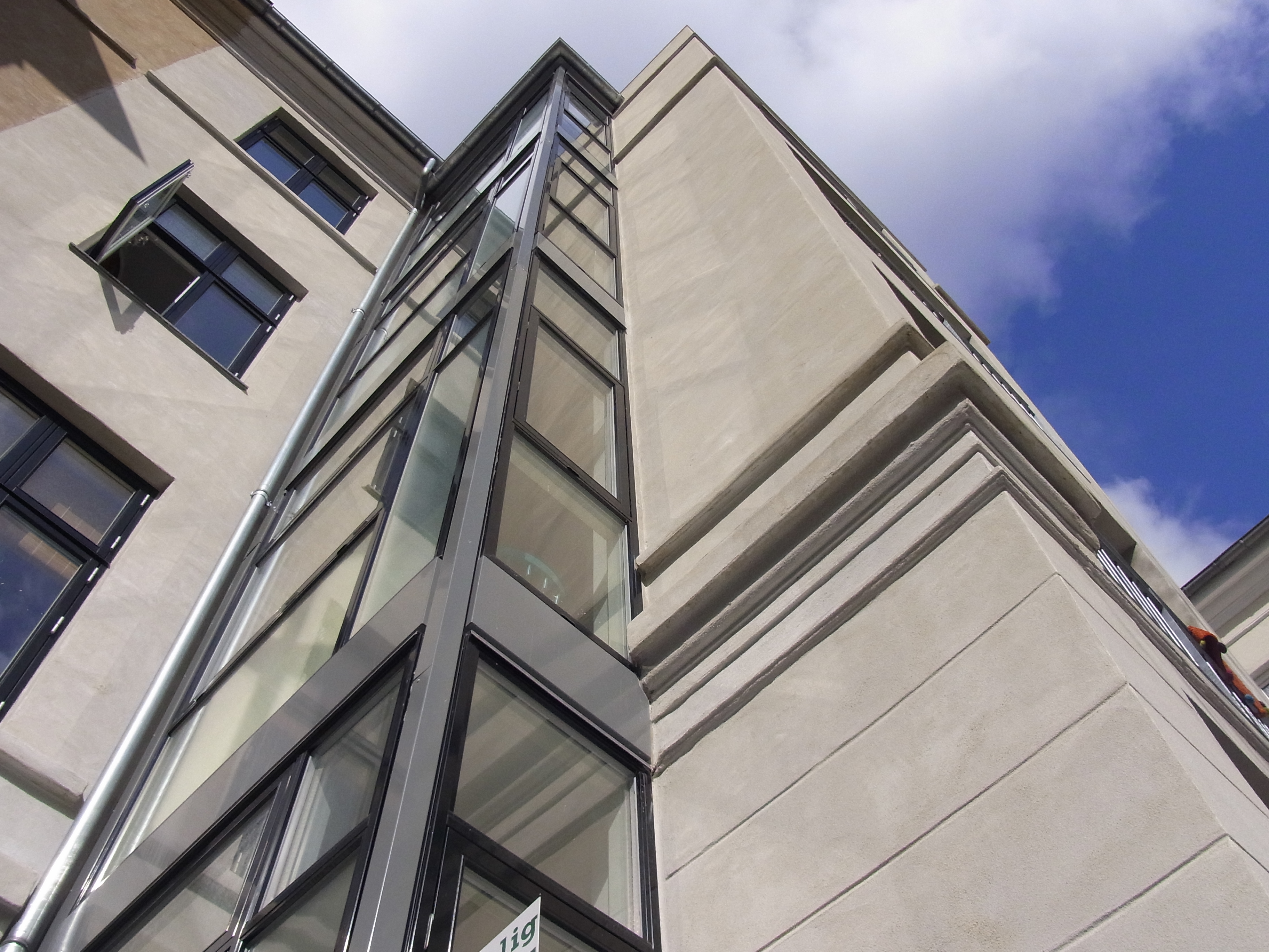 Trappetårnet i gården er bevaret og indrettet med små altaner i tilknytning til de nye køkkener, hvis glaskarnapper giver optimalt lys til de små spisepladser. Facaderne er istandsat og vinduerne udskiftet til nye med energiglas, mod gaden med lydruder.