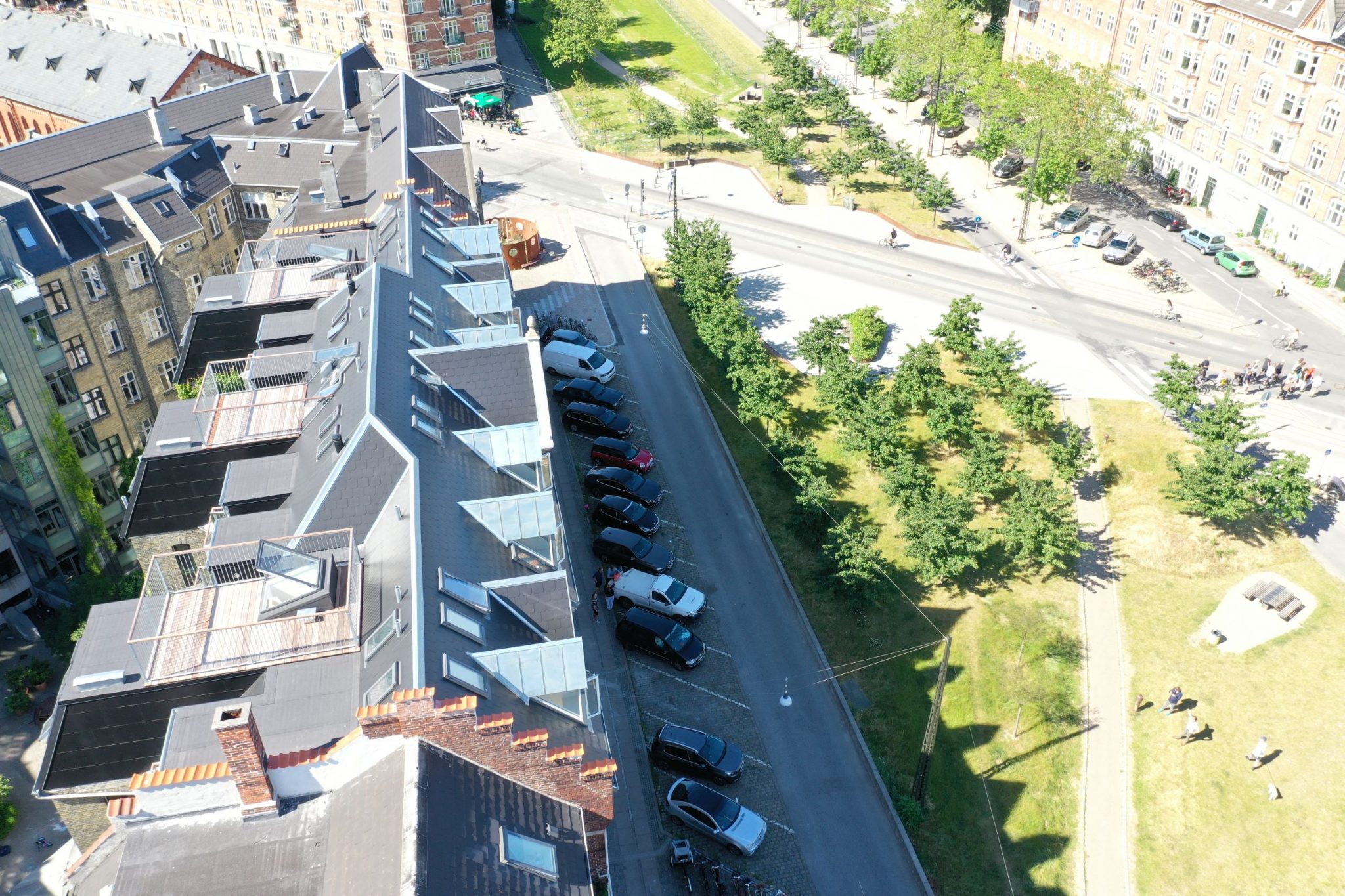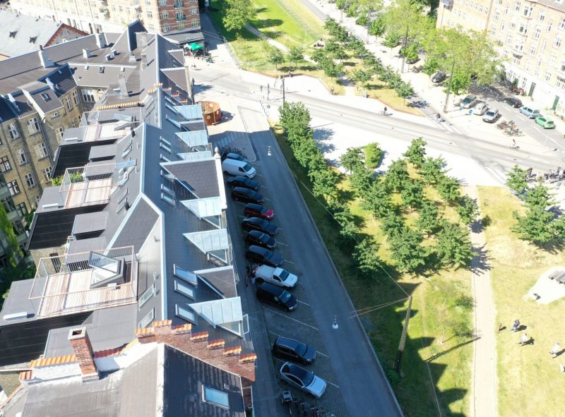 Energiberegningen viser at de nye 5.sals lejligheder bruger mindre energi end der tidligere strømmede ud mellem 4. sal og tørreloftet. Et interessant eksempel på at etablering af flere lejligheder bruger mindre energi samlet. Derudover har vi bygget i et område med instrastukruren på plads.