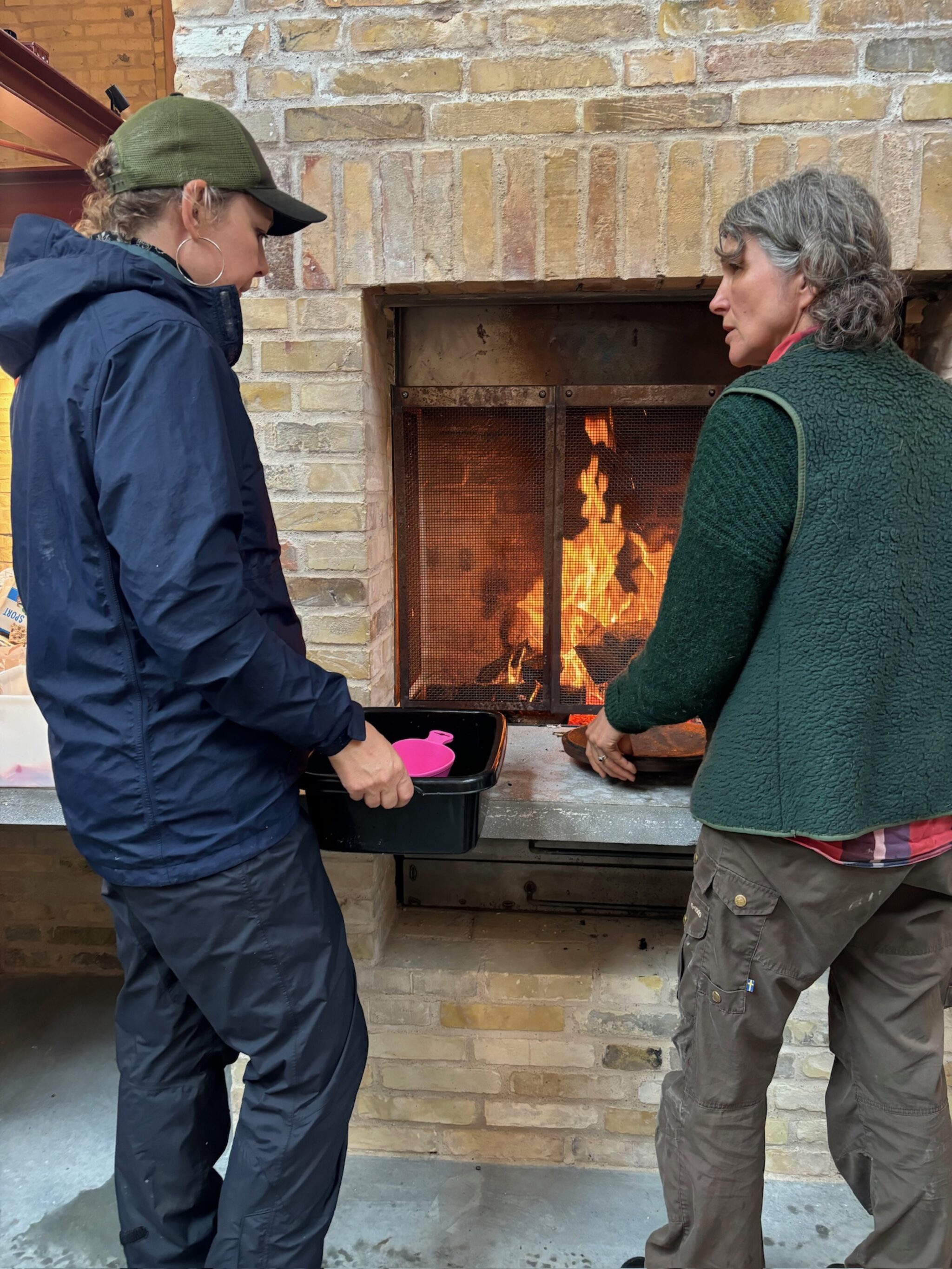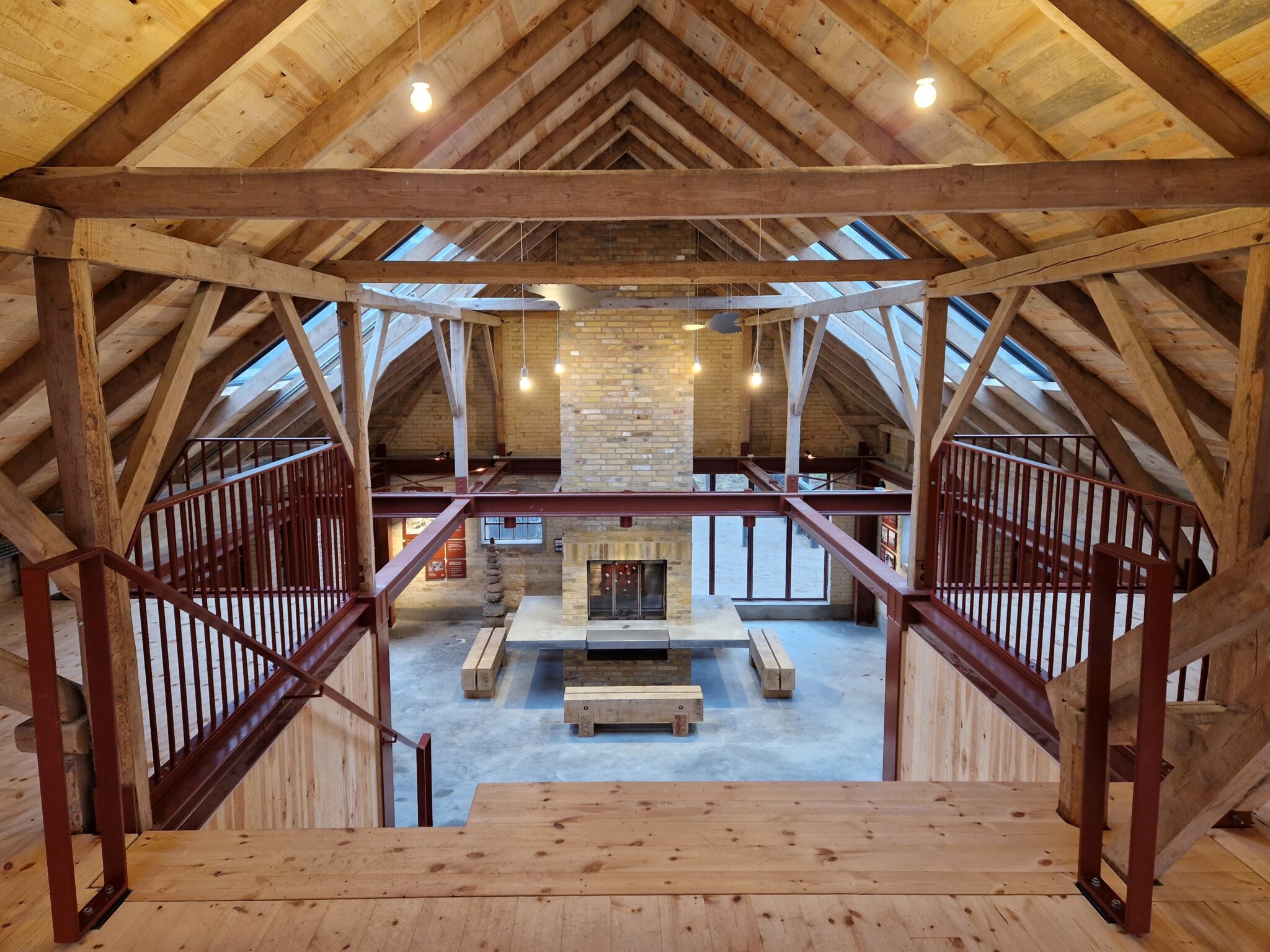 Begge rum kan åbnes op mod naturen via store porte, og med ild i pejsene, og mulighed for at åbne og lukke portene for vind og vejr, leder arkitekturen tankerne hen på ”en moderne bålhytte”.