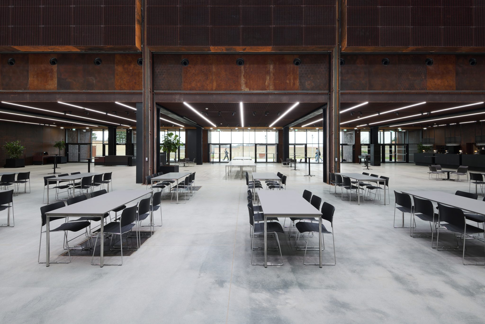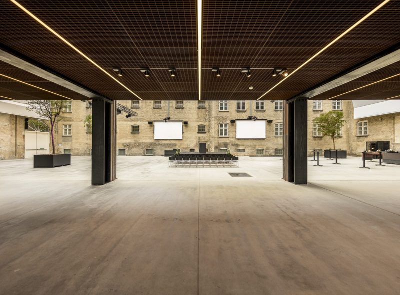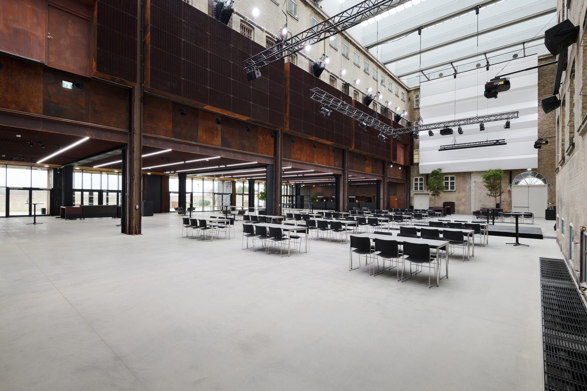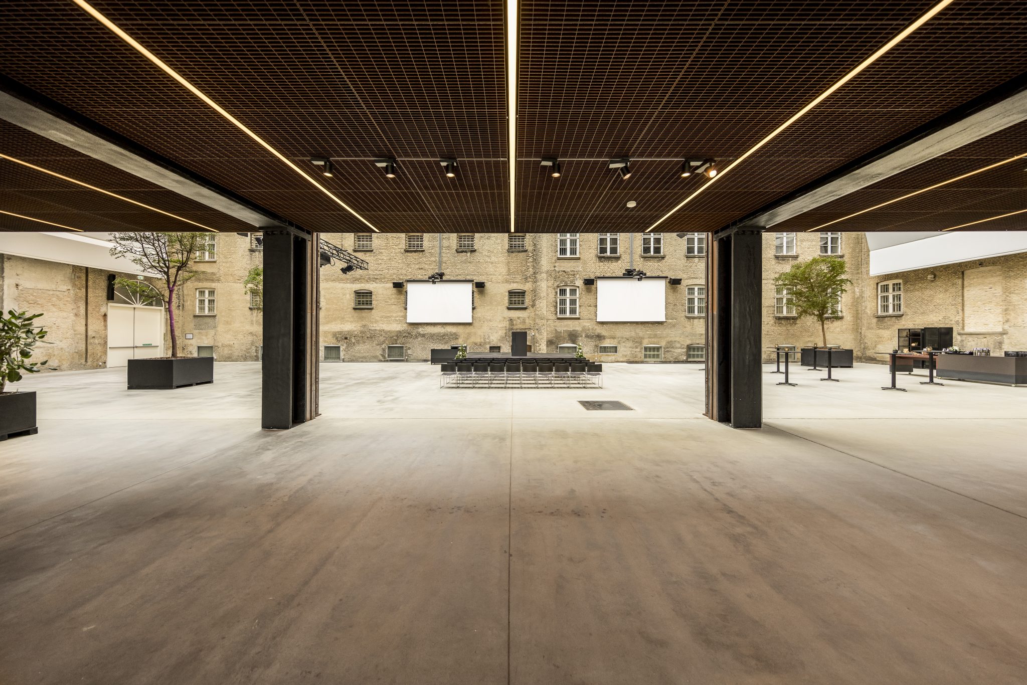 Den store betonplint, der skyder sig ud i Fængselsgården, skaber en stor brugsflade for de nye sale, og ved helt åbne arrangementer i sommeråret kan man forestille sig hele fladen, inde som ude, taget i brug.