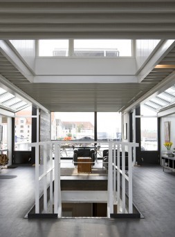 Vogndækket udgør husbådens hovedetage i et 20 m langt rum. Den tilføjede stålkonstruktion er ophængt i den eksisterende brokonstruktion, hvorved der ikke er behov for yderligere understøtning og vogndækkets rumlighed kan opleves uden søjler.
