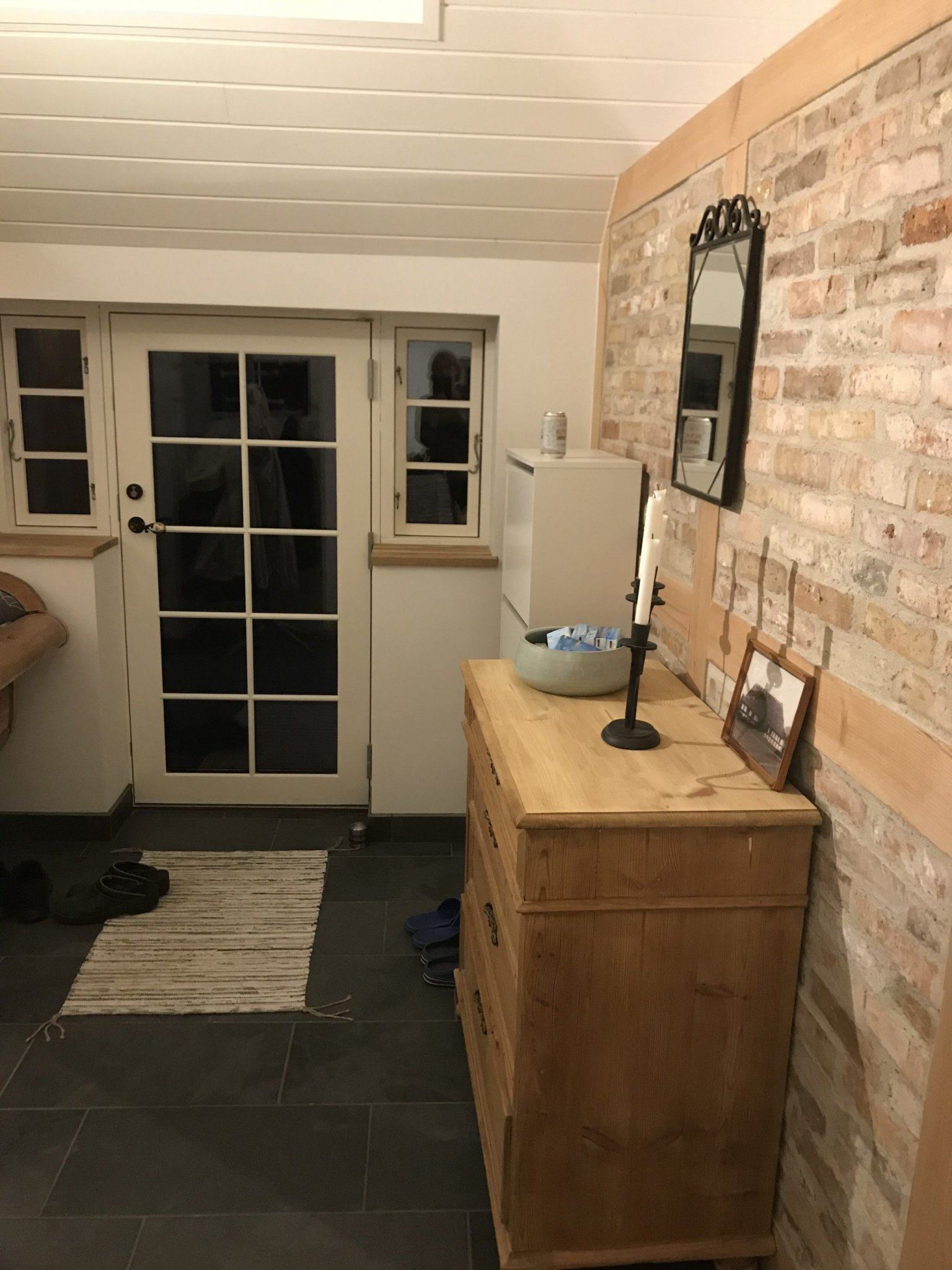 Vi har forsøgt at genbruge hvor det har været muligt. Køkkenelementer mm er købt brugt. Møbler er brugt. Døre afsyret