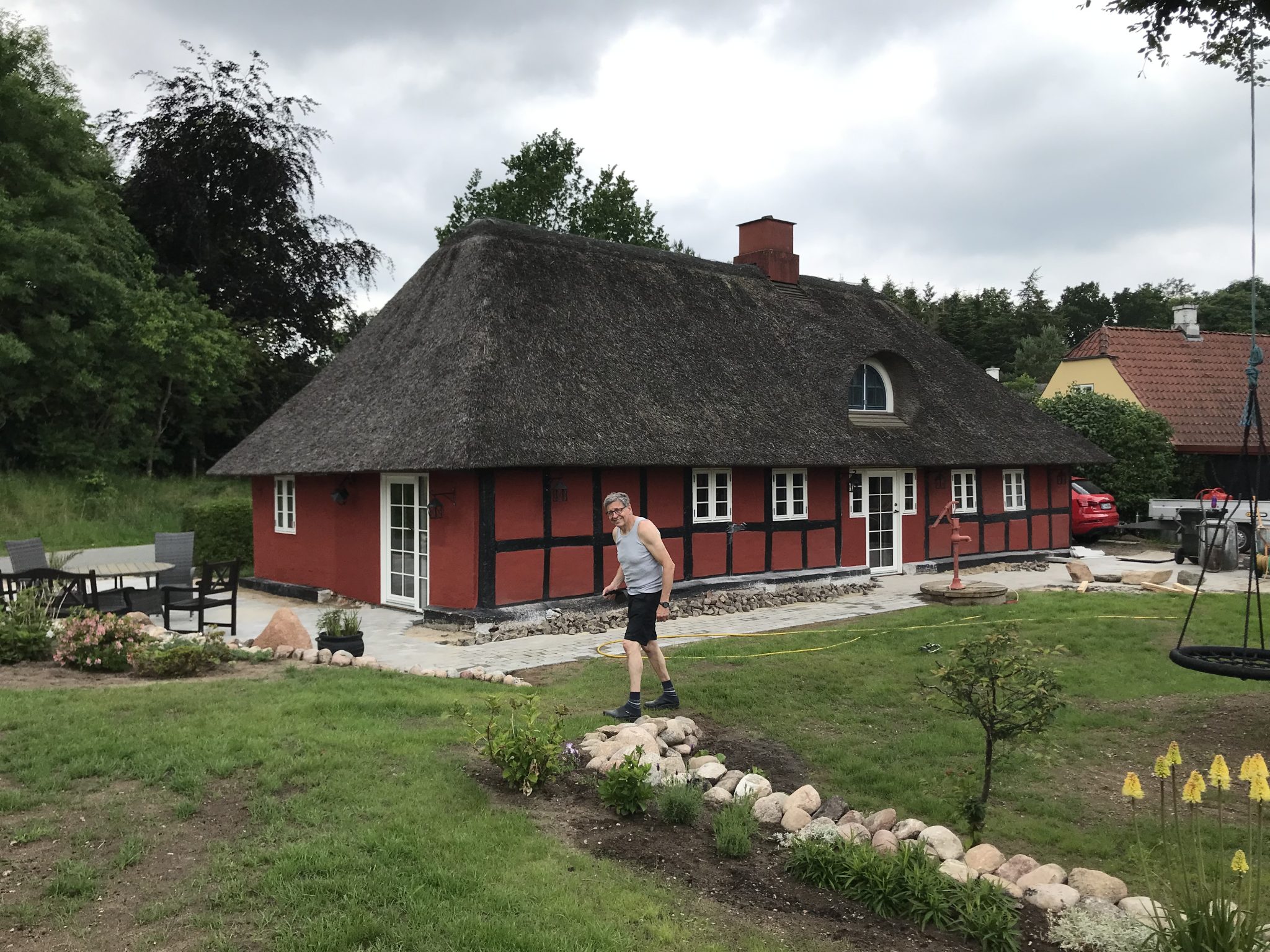 Grunden er også totalt omlagt udenfor, med stensætning, terrasser, plæne mm