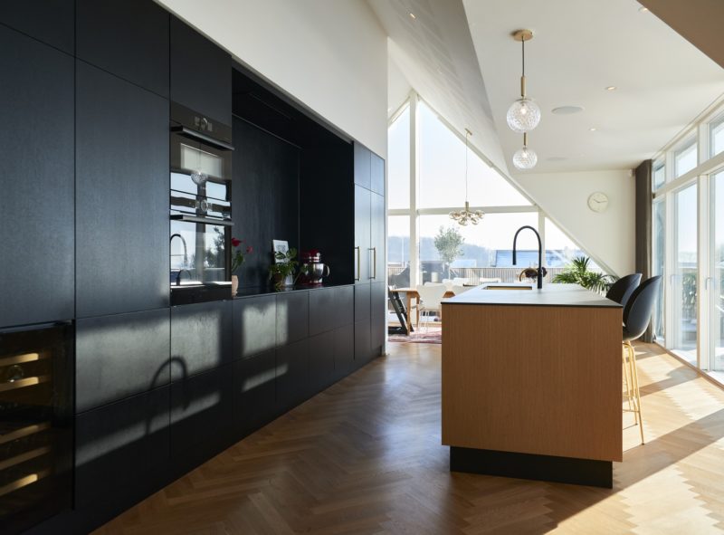 Den nye førstesal er blevet husets hjerte og nye samlingssted med en åben planløsning, loft til kip og masser af dagslys. Førstesalen er designet med stor grad af gennemsigtighed og en åbenhed der er struktureret omkring den fritstående køkkenkerne som omdrejningspunkt der opdeler rummet i forskellige zoner. Køkkenet er integreret og smelter sammen med det øvrige inventar med varme og kontrast. Træ er et gennemgående materiale i huset, både brugt i konstruktioner, som facadeelementer, som gulve og til løst og fast inventar. Træet er et smukt og miljøvenligt materiale der bidrager til et varmt nordisk udtryk.