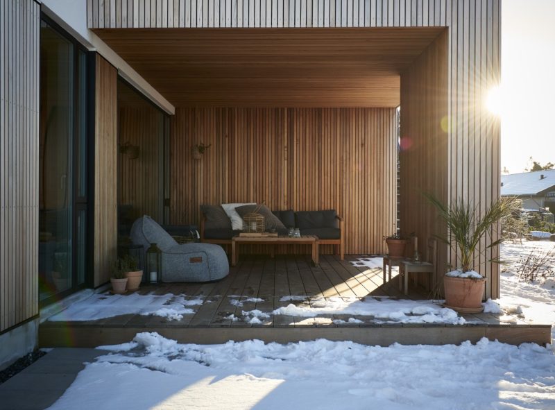 Huset er efterisoleret udvendigt for at mindske varmetabet og sikret mere jævn rumtemperatur.
