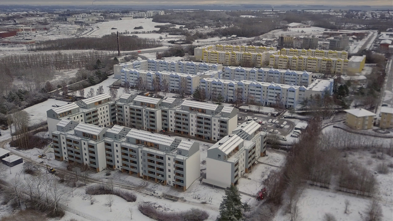 Bebyggelsens samlede energiforbrug er reduceret med over 60%, og det reducerede varmebehov hjælper fjernvarme-forsyningen til at dække behovet ved lavere temperaturer og tilmed med et udvidet samlet areal.