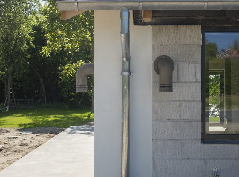 Familiens forbrug af el og vand bliver dækket af henholdsvis solceller og regnvandsopsamling.