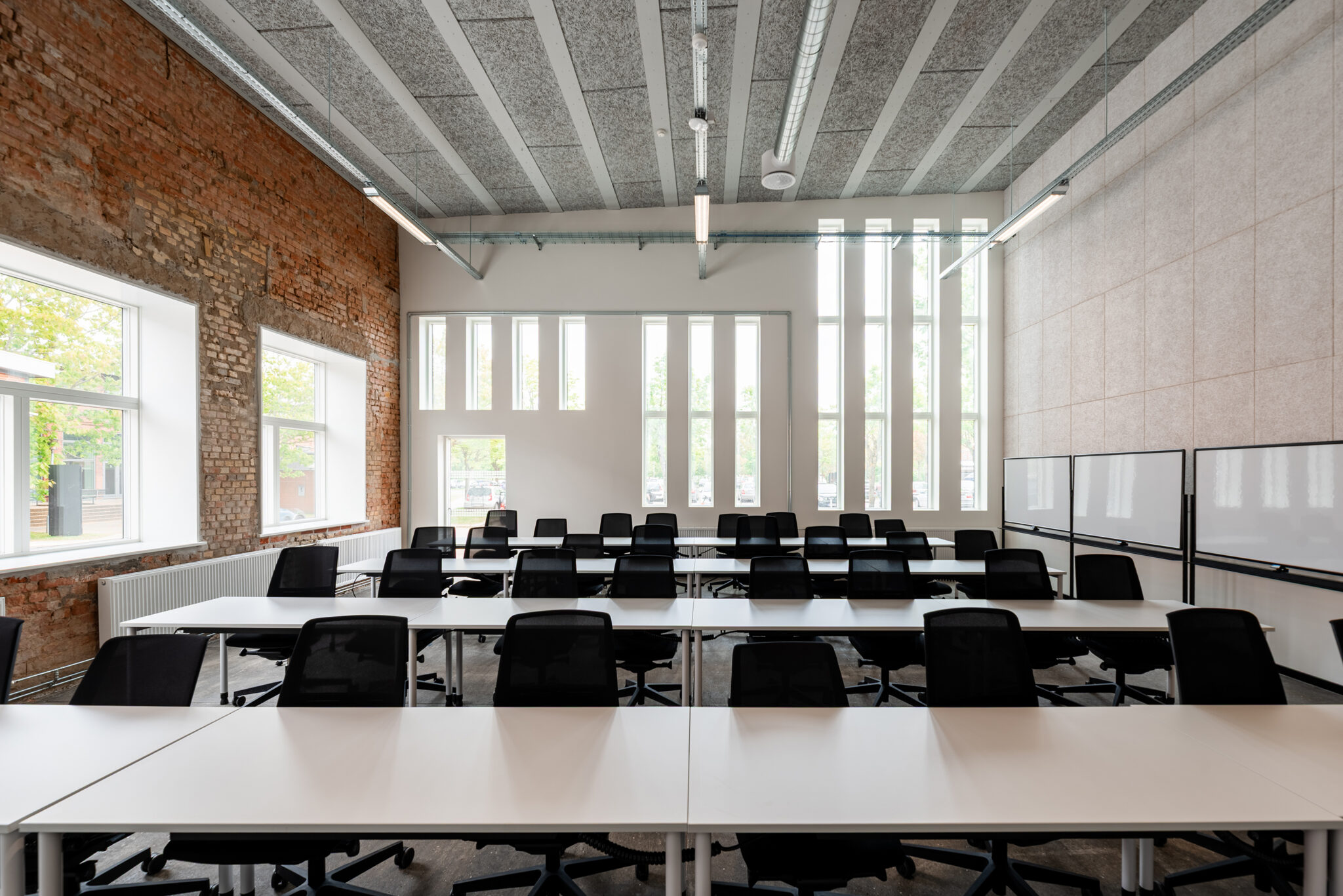 Fredericia Maskinmesterskole har åbnet en ny afdeling i Sønderborg, hvor fremtidens maskinmestre kan blive uddannet i en tidligere kedelhal, som er blevet omfattende transformeret til et lyst og højloftet undervisningsmiljø, hvor det rå murværk står i spændende kontrast til de nye tilføjelser.