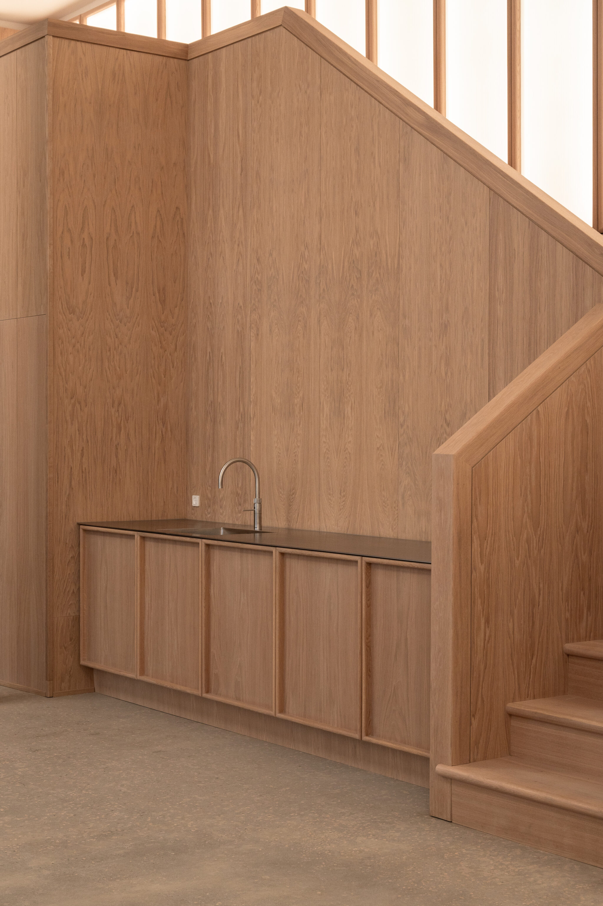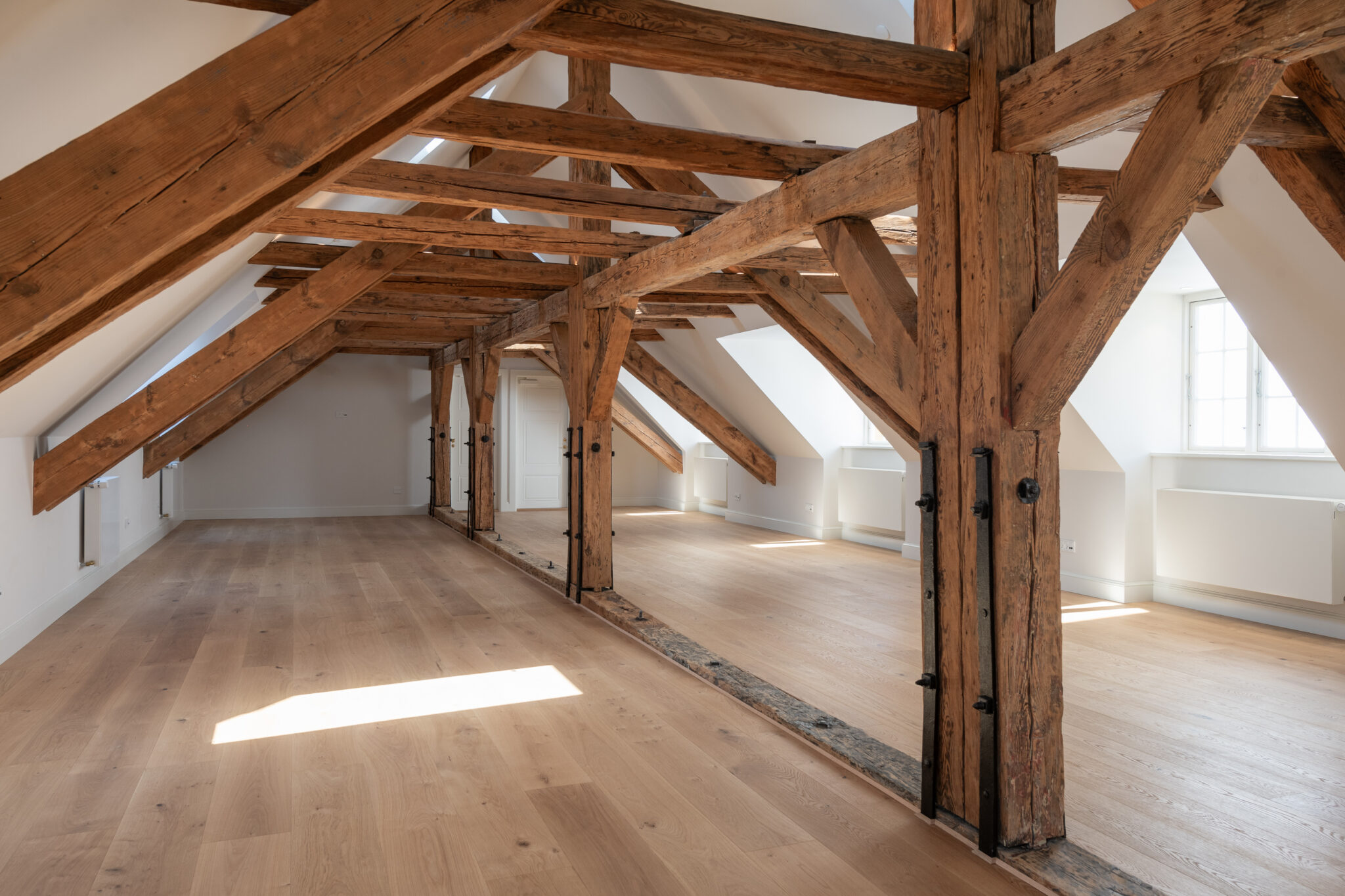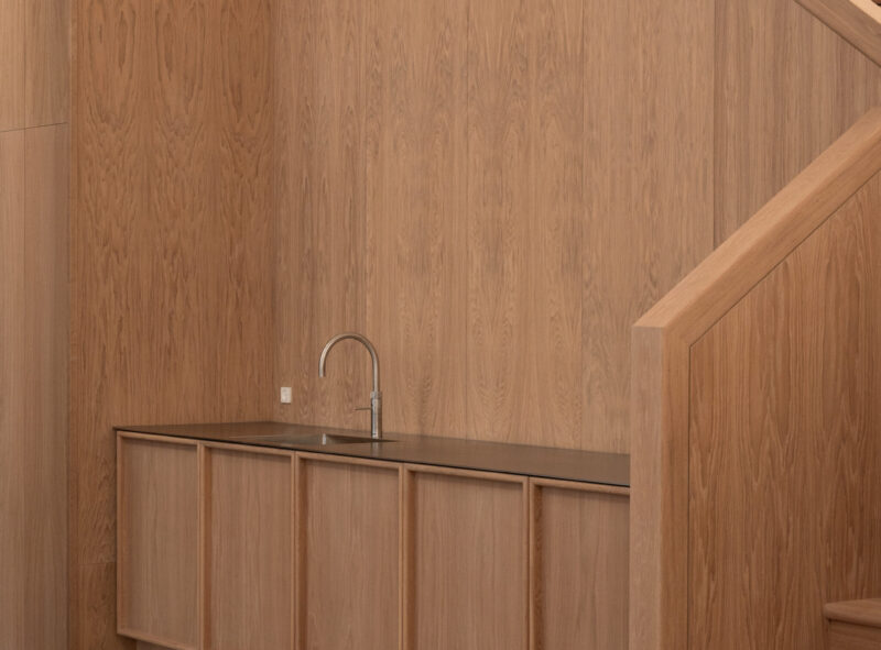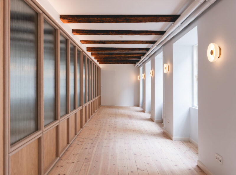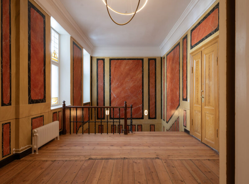 Projektet har ligeledes været kendetegnet ved en målrettet og bæredygtig tilgang til materialer og ressourcer. Alle originale vinduer, gulve og stukdetaljer er nænsomt restaureret for at bevare så meget af bygningens oprindelige karakter som muligt. Derudover er træ, som blev nedtaget under renoveringen, blevet genbrugt i andre dele af bygningen. Tidligere uudnyttede områder som kælderen og tagetagen er blevet omdannet til funktionelle og brugbare rum, der understøtter bygningens nye anvendelse. For at sikre en miljøvenlig tilgang er der desuden anvendt svanemærket maling, mens kalk og rørpuds er brugt i de fredede områder for at sikre original håndværksmæssig udførelse og kvalitet.